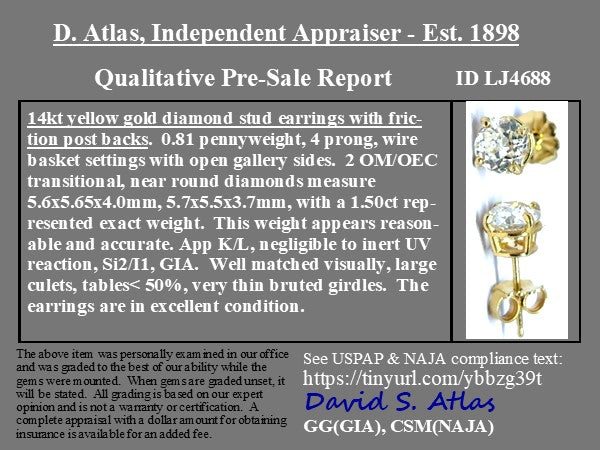 1.50ctw Old Mine Cut Diamond Stud Earrings