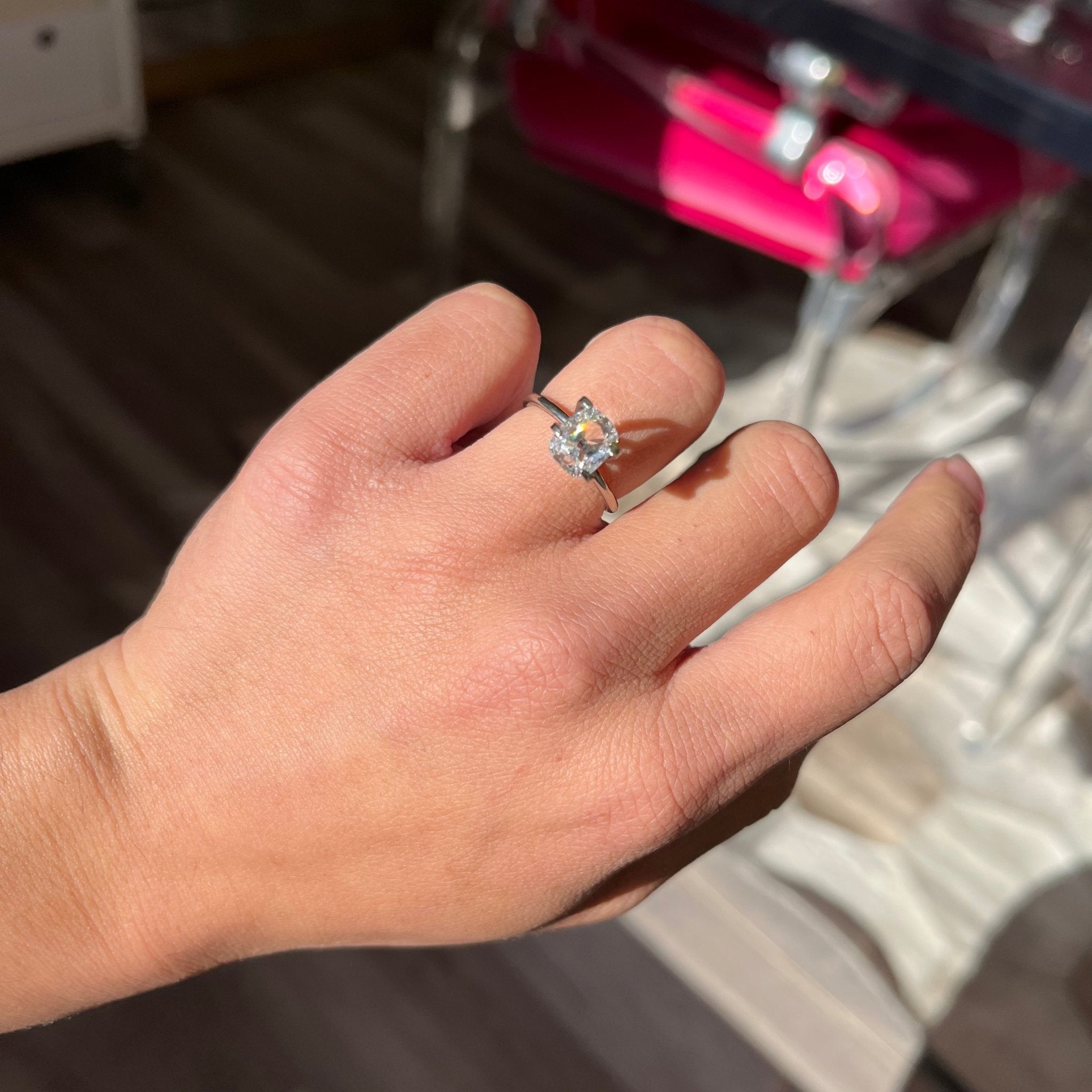 - Diamond measures 7.95 x 6.51 x 3.04mm