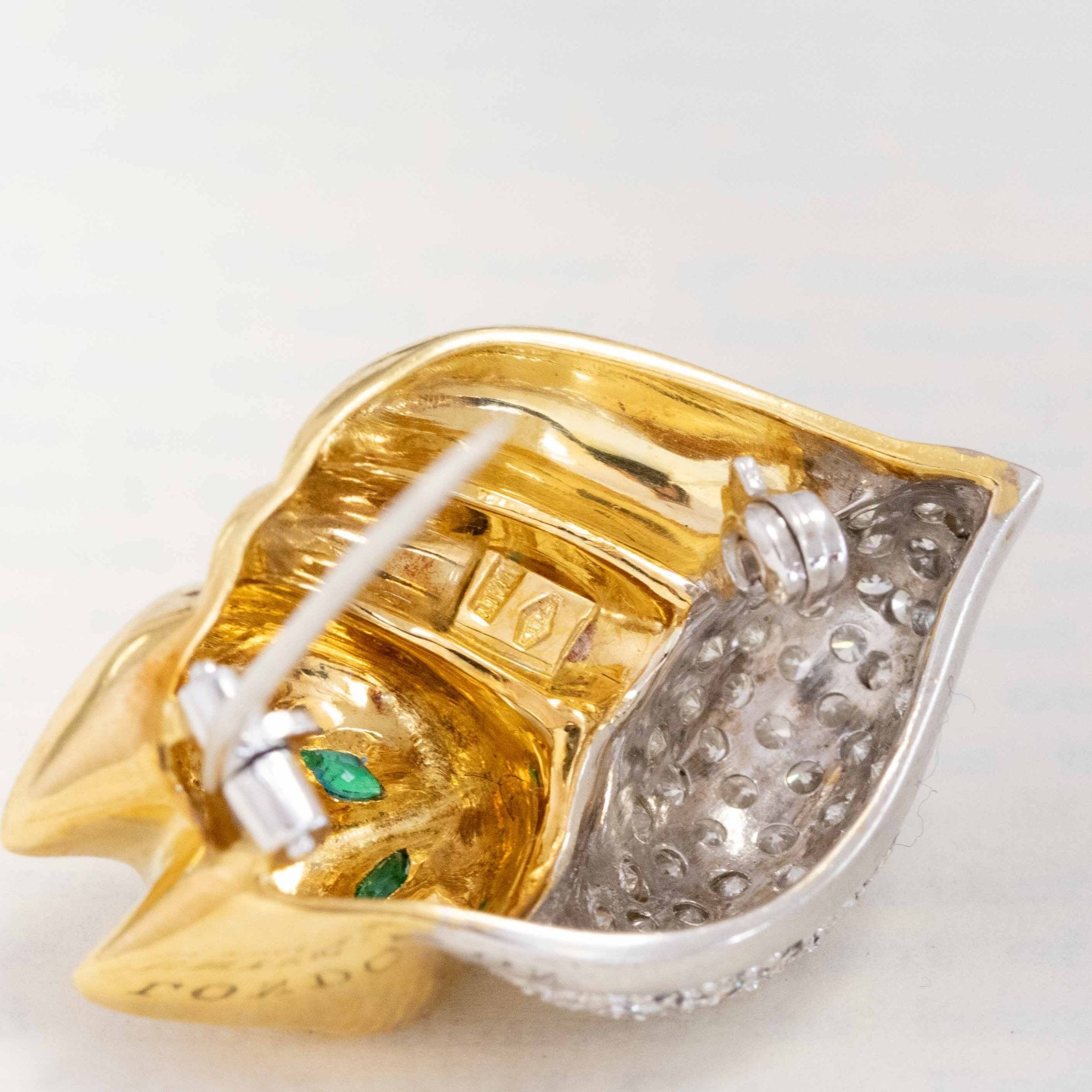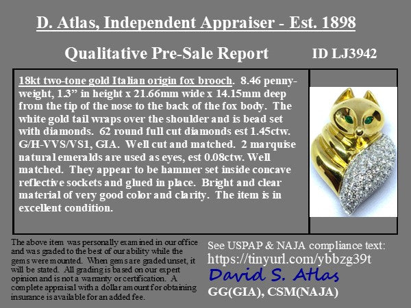 1.53ctw Diamond & Emerald Fox Brooch Italian