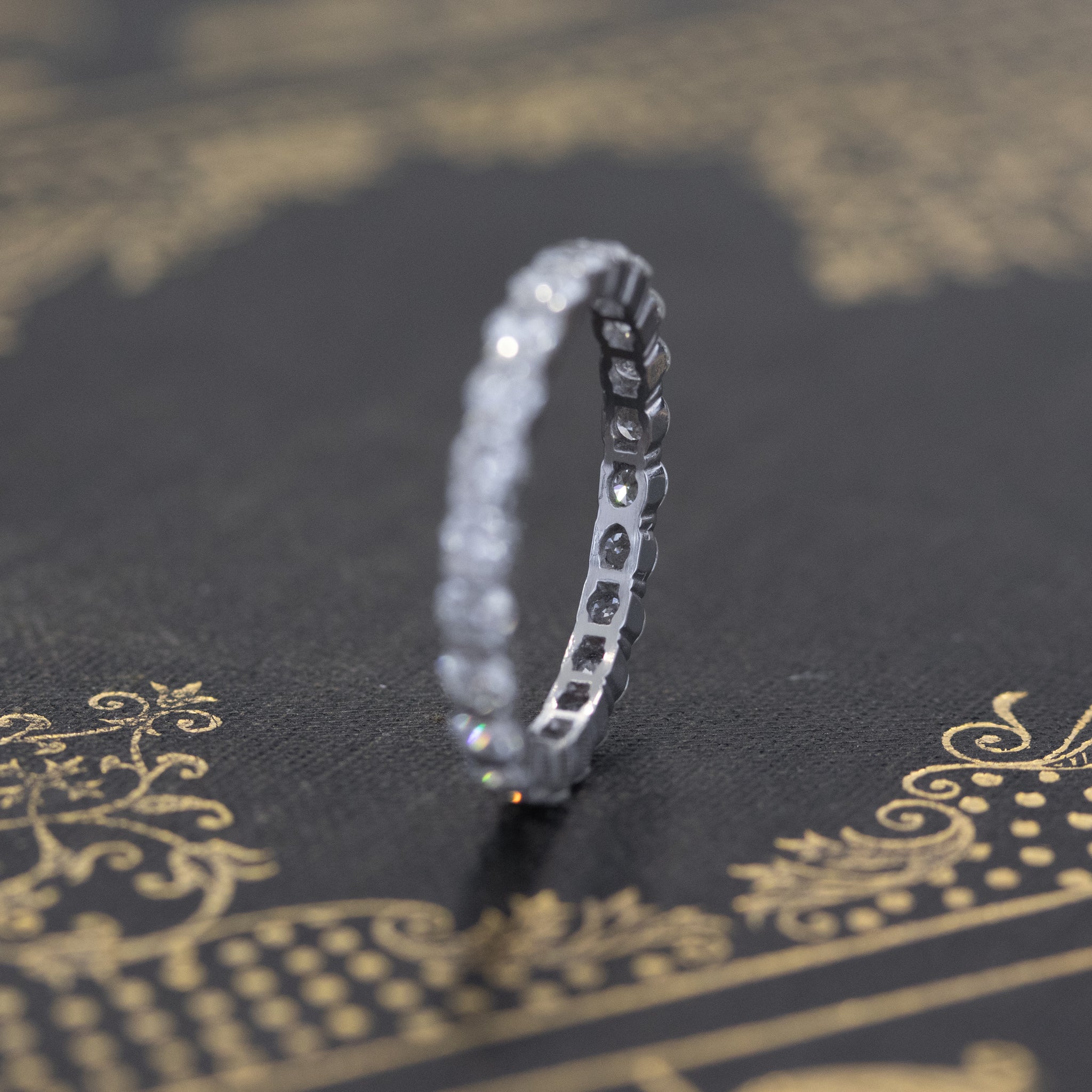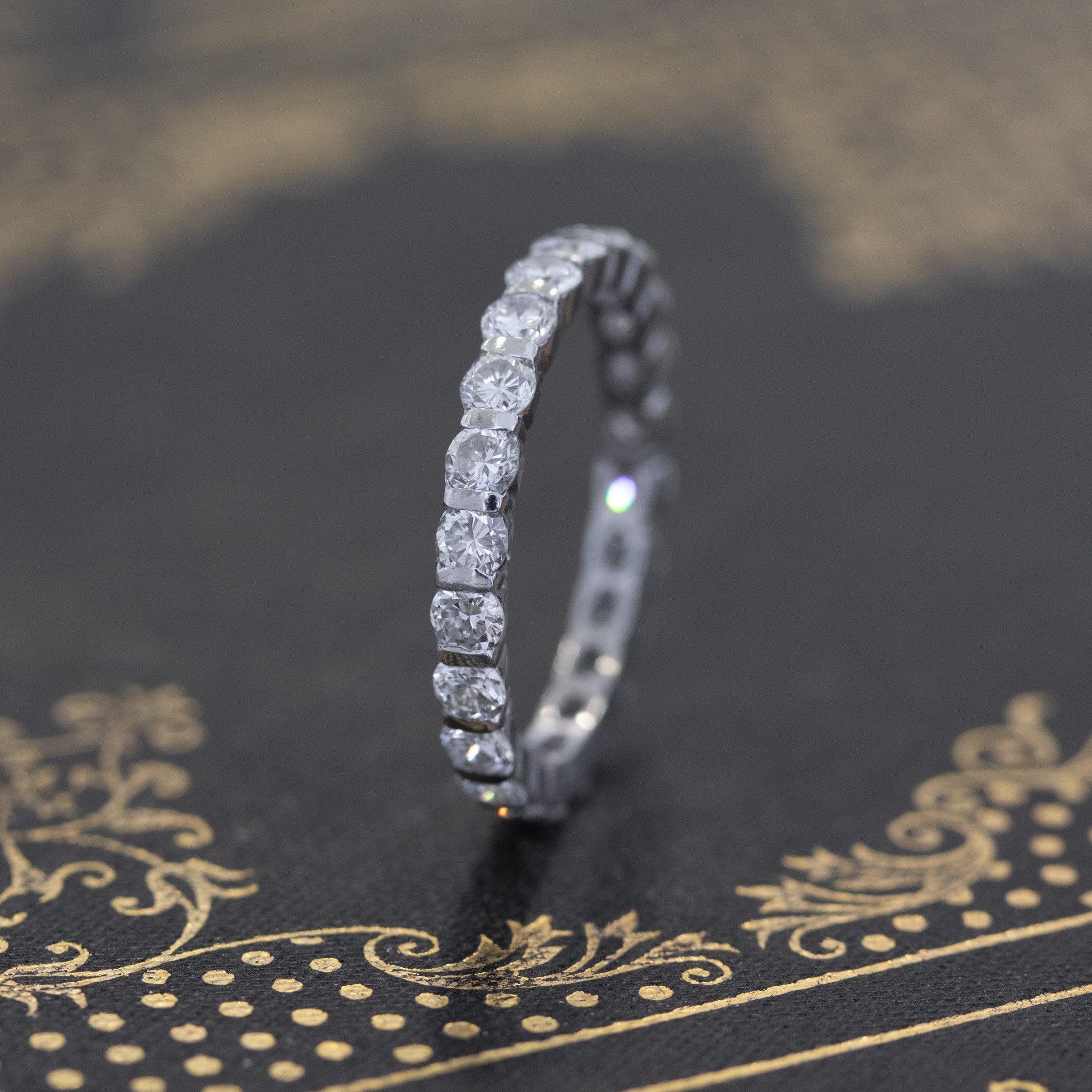 A sleek and timeless eternity band using the brightest and sparkliest round brilliant diamonds on the block! This shared prong diamond band is the perfect sparkly stacker, and would make an exemplary member of any band stack you decide to throw her in.