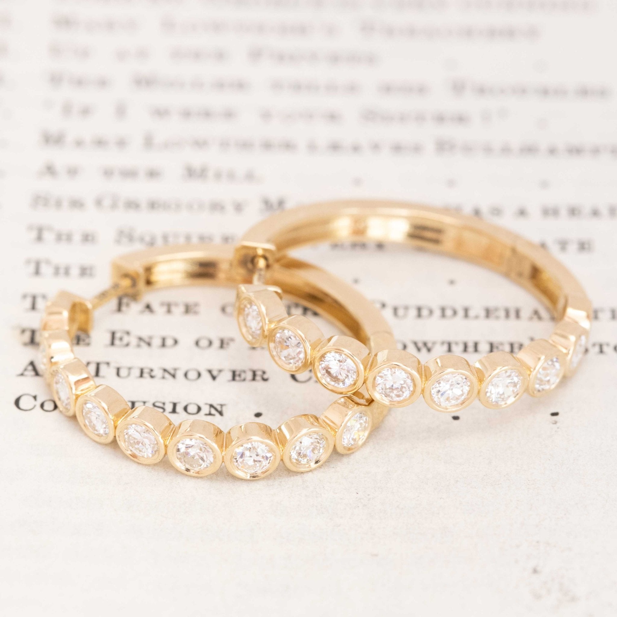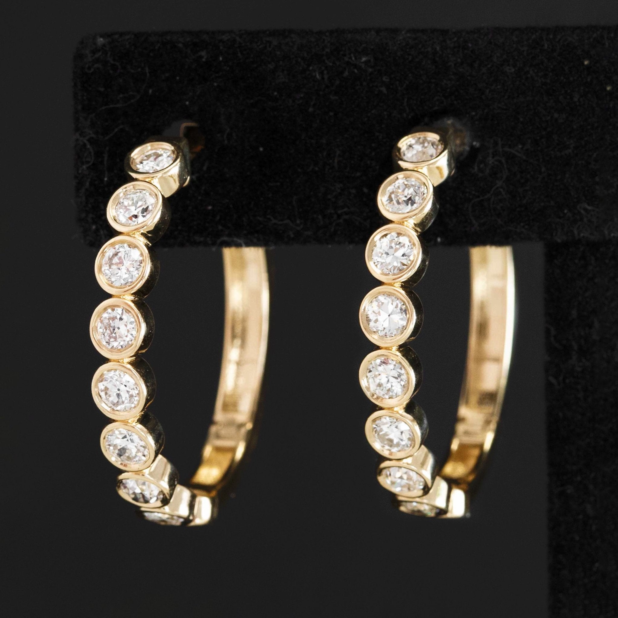 1.61ctw Old European Cut Diamond Bezel Hoop Earrings