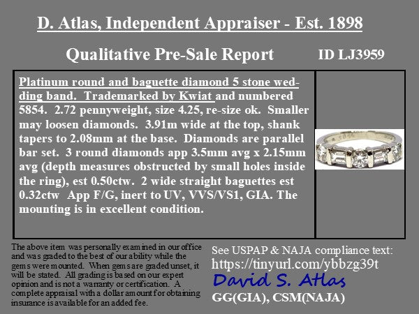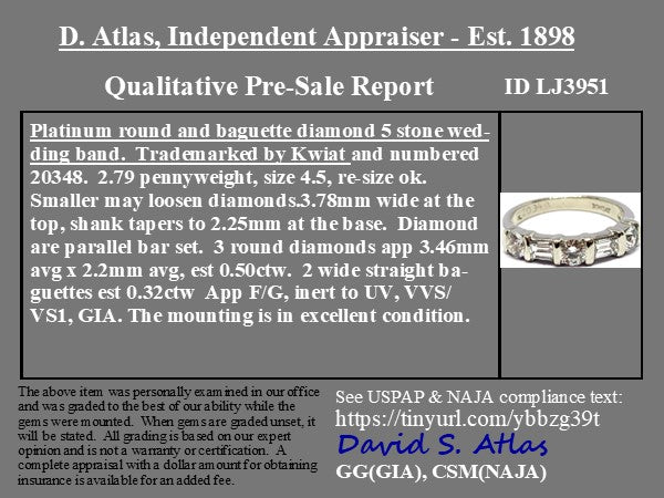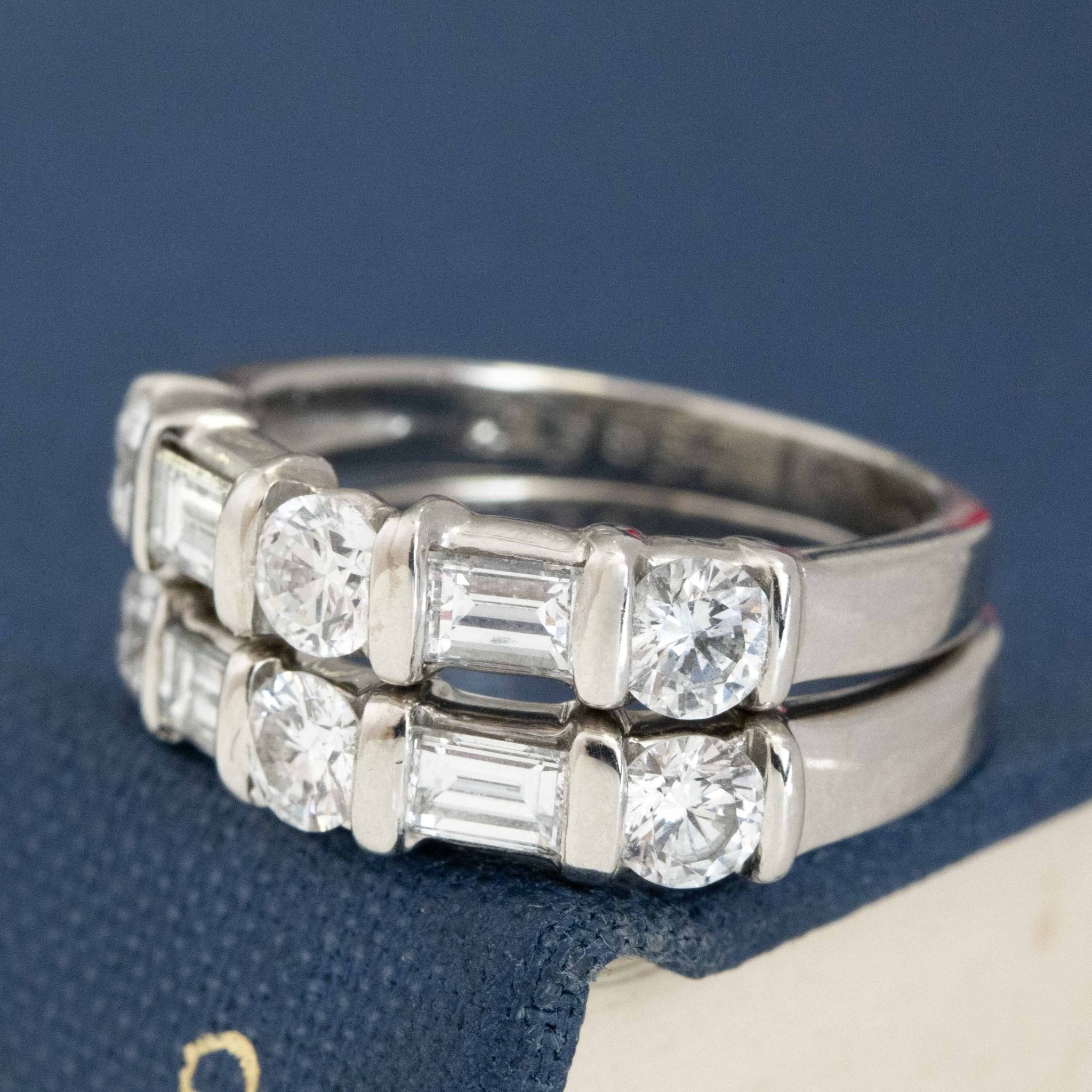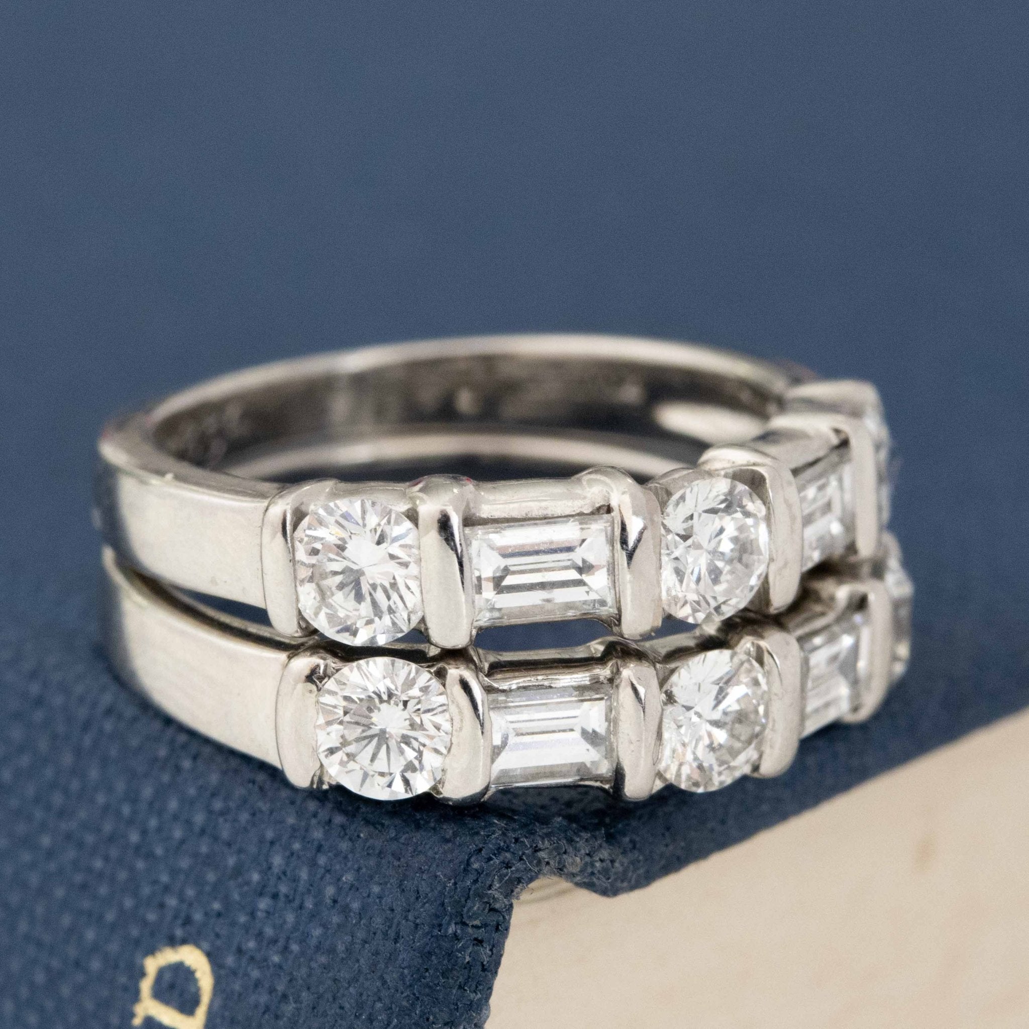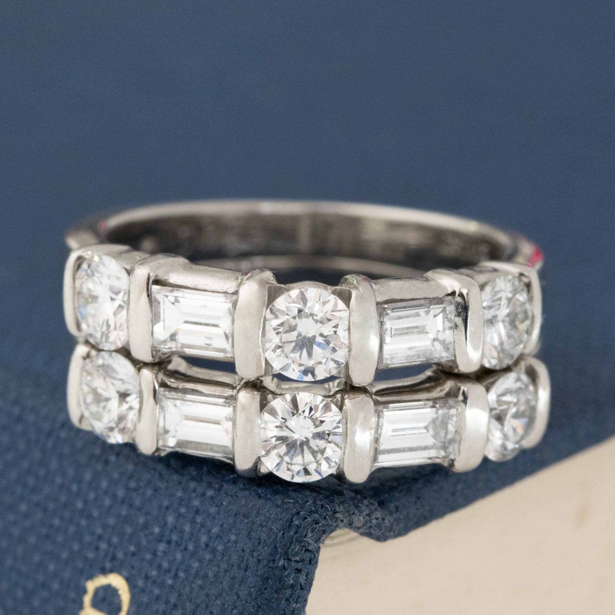 Timeless mixed diamond bands from jewelry house KWIAT - set with beautifully cut round and baguette diamonds in platinum. The perfect stacker!
