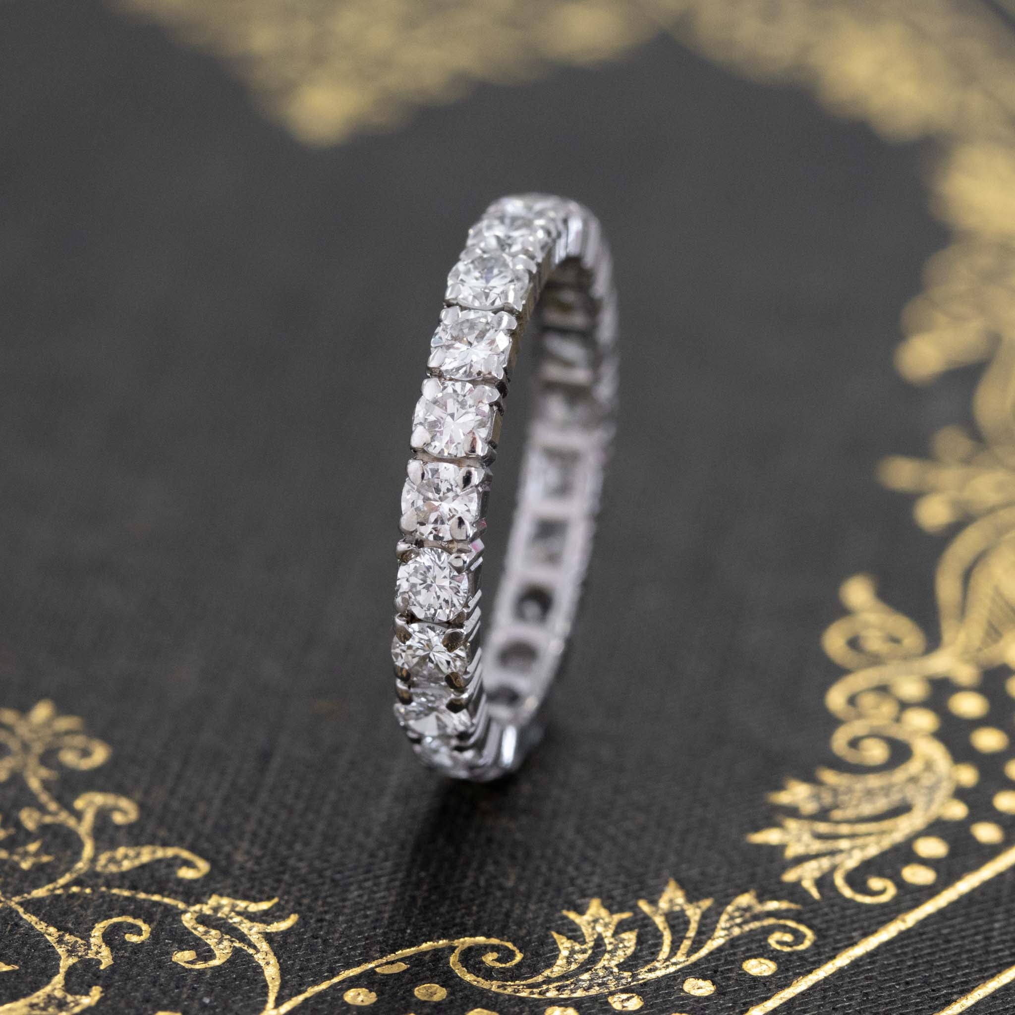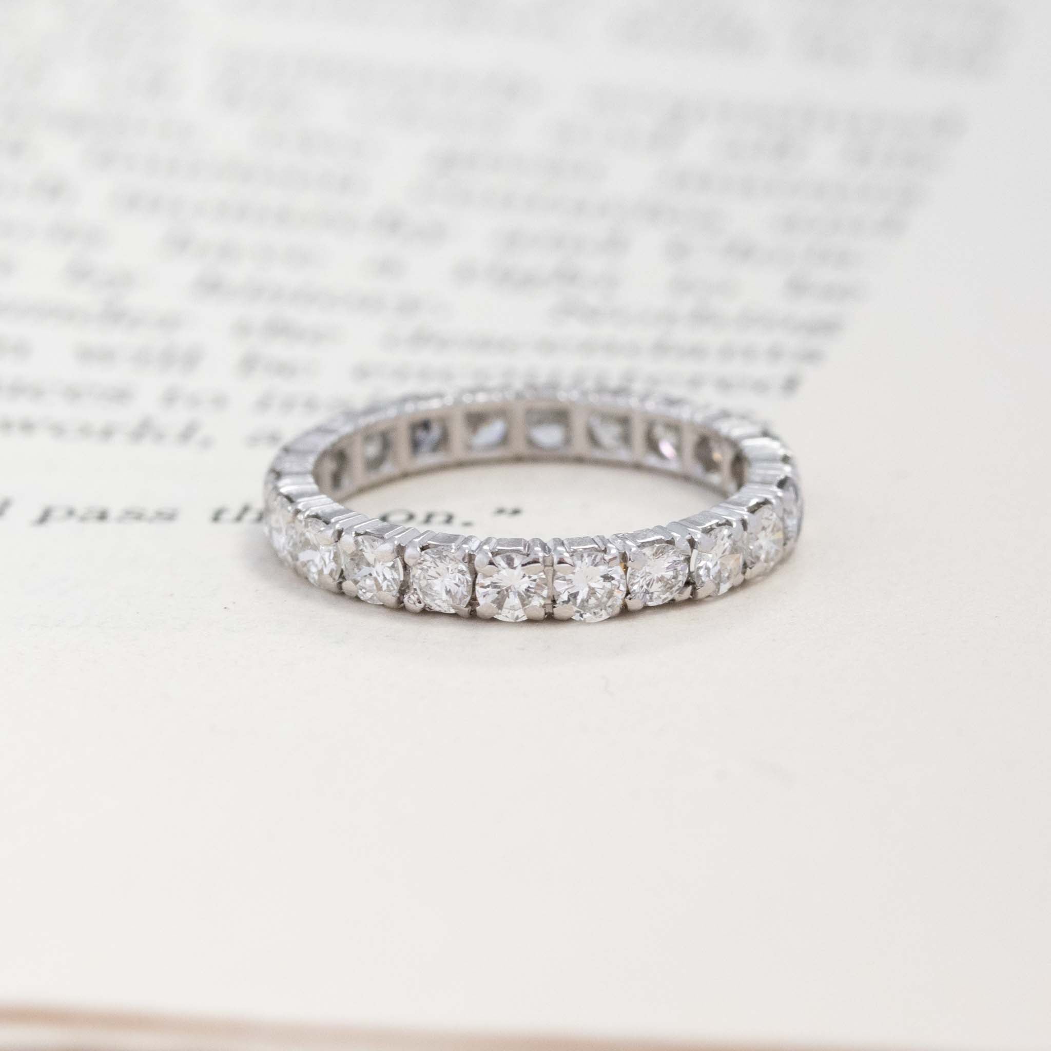 A classic diamond eternity band - easy like Sunday morning, and ready for everyday sparkle and wear! With bright round brilliants in 18kt white gold, this band is sure to fit in with any band stack or engagement ring you match her up with, We also find it to be just as charming on its own - not matter how you wear it, we’re sure it’ll soon become a new favorite from the jewelry box.