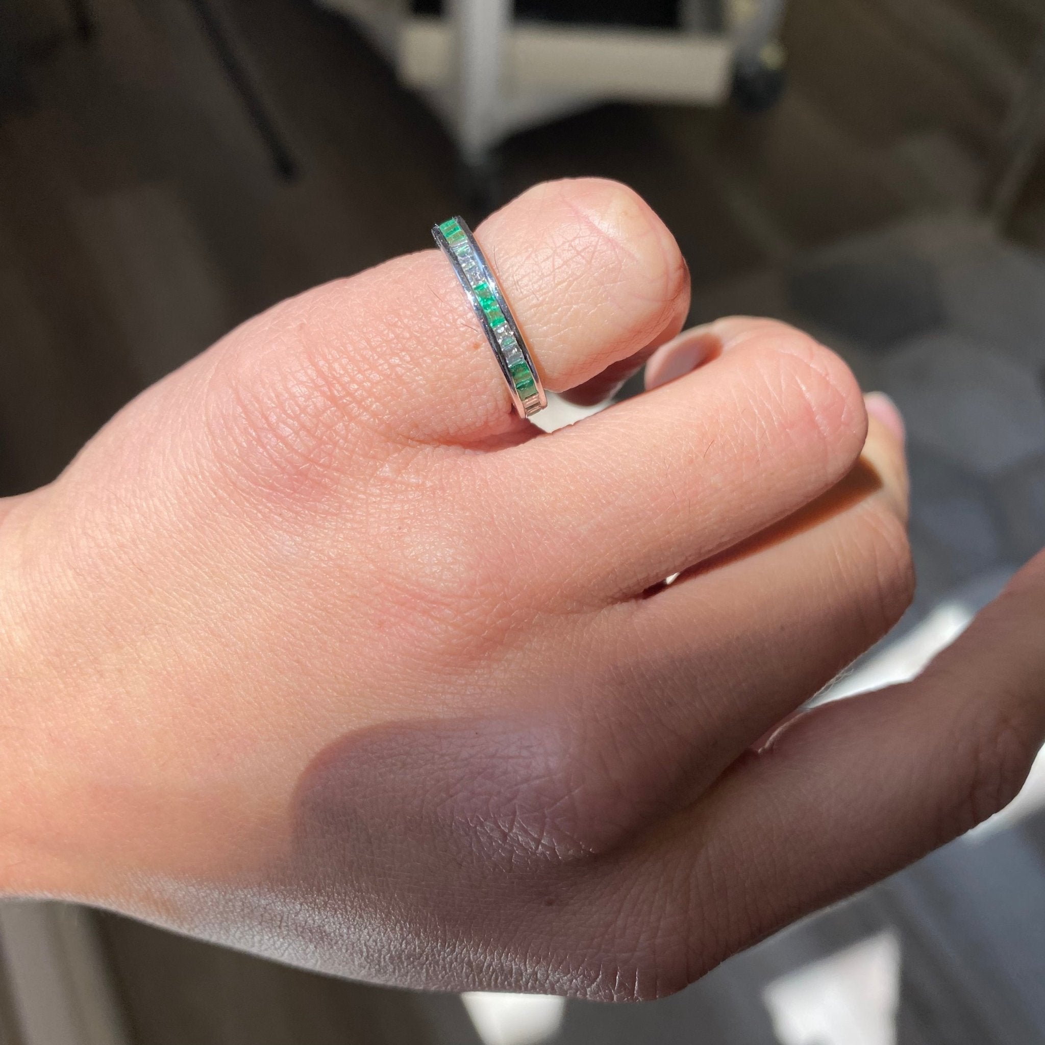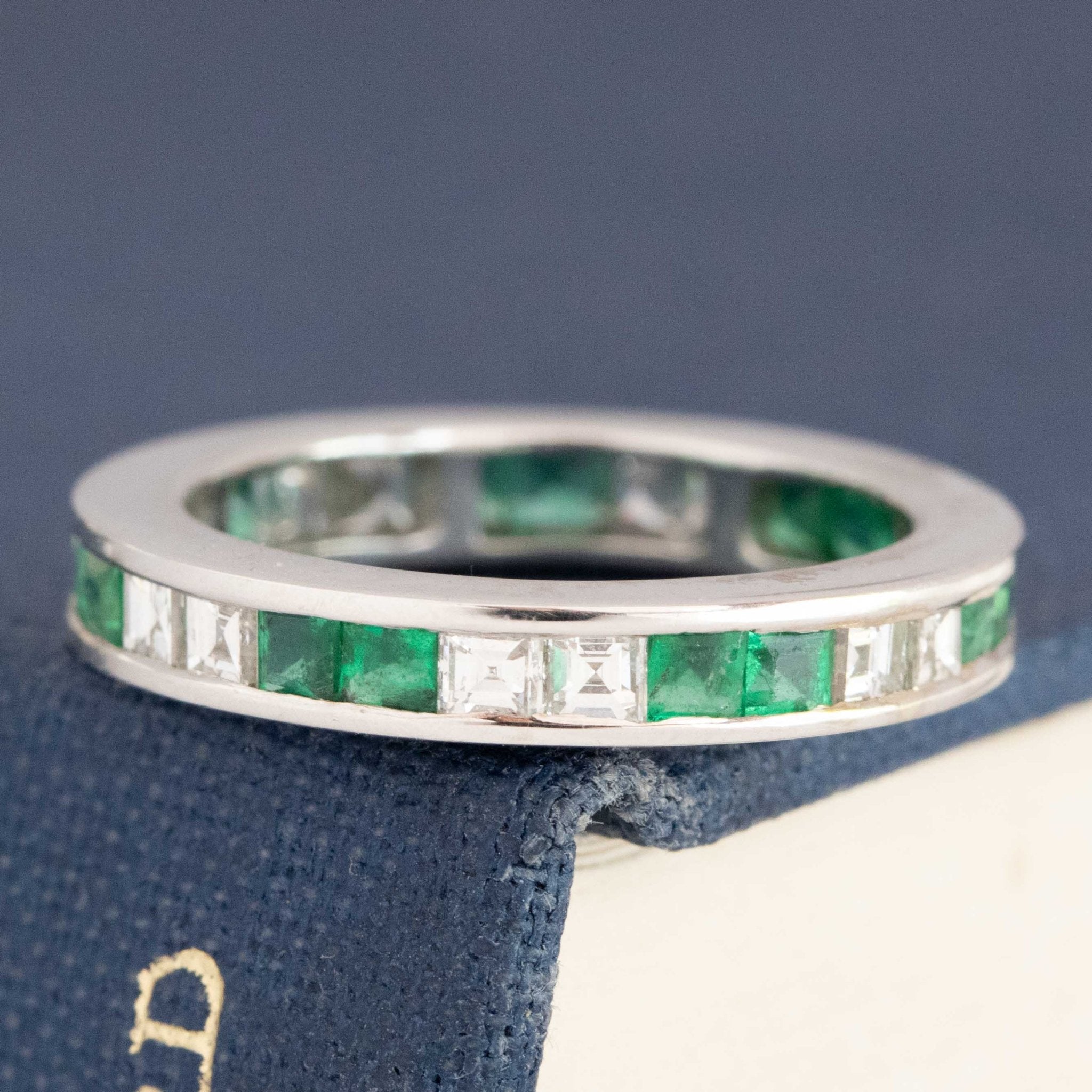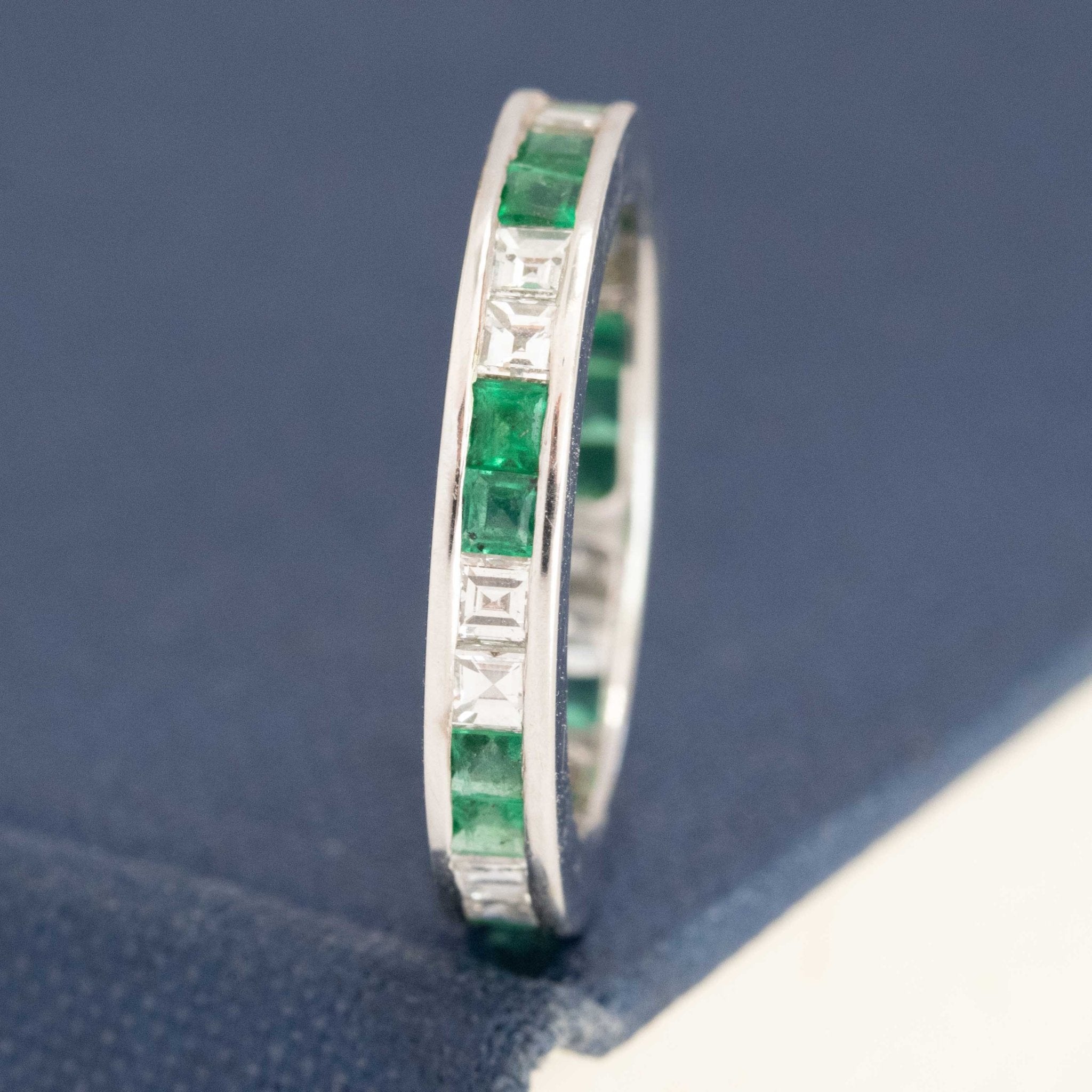 1.66ctw Emerald & Step Cut Diamond Eternity Band
