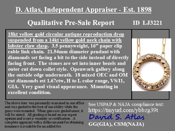 1.67ctw Old Mine Cut Diamond Circle Pendant