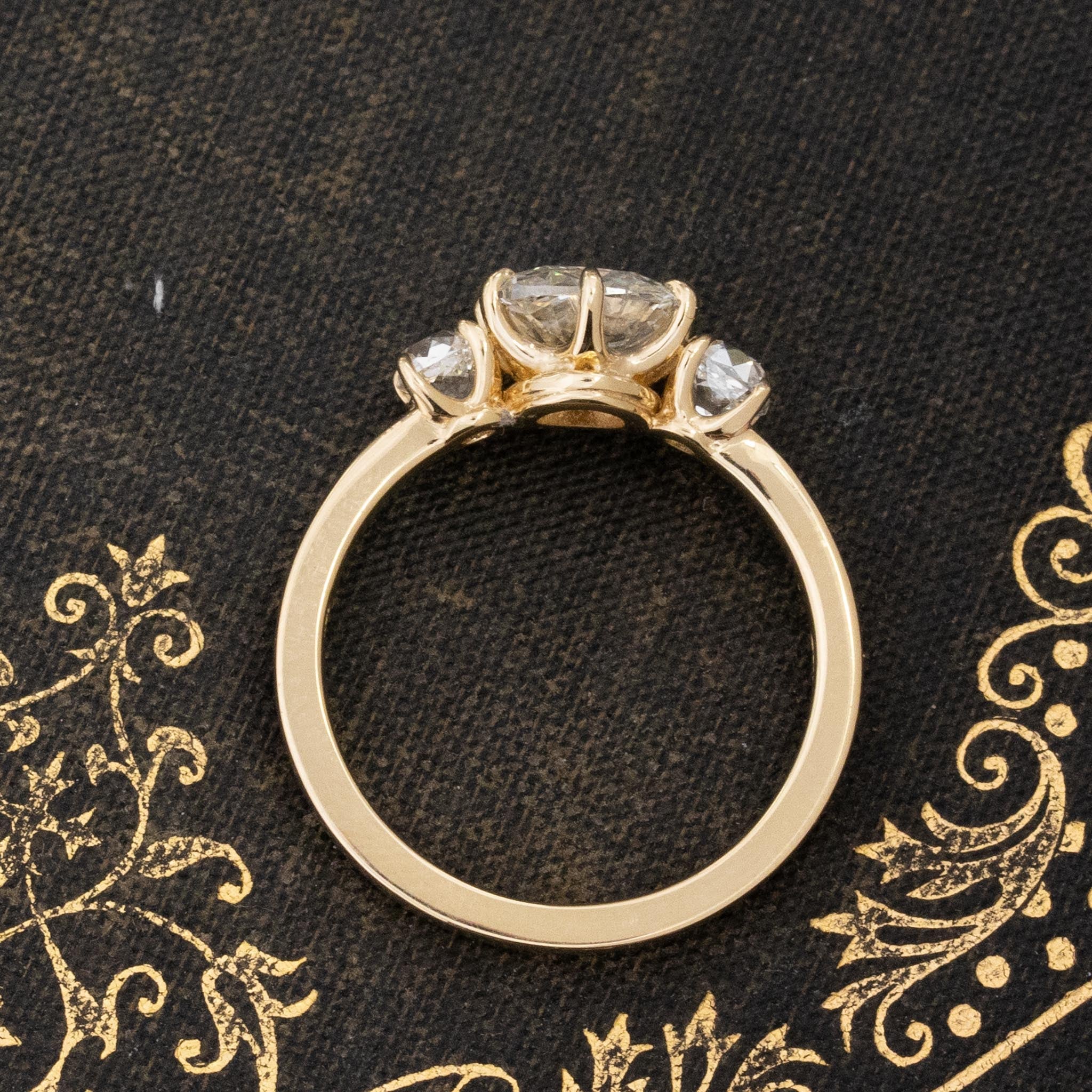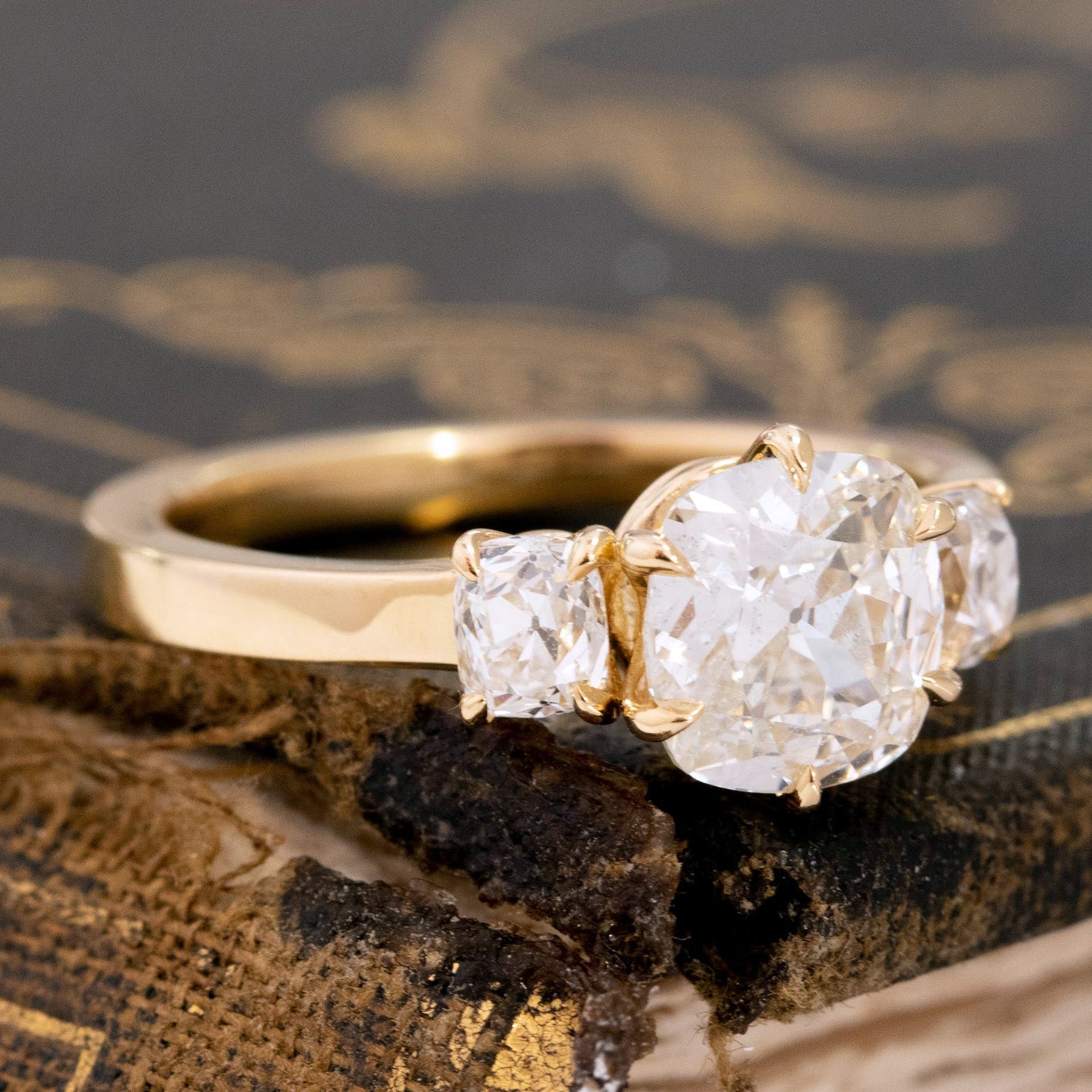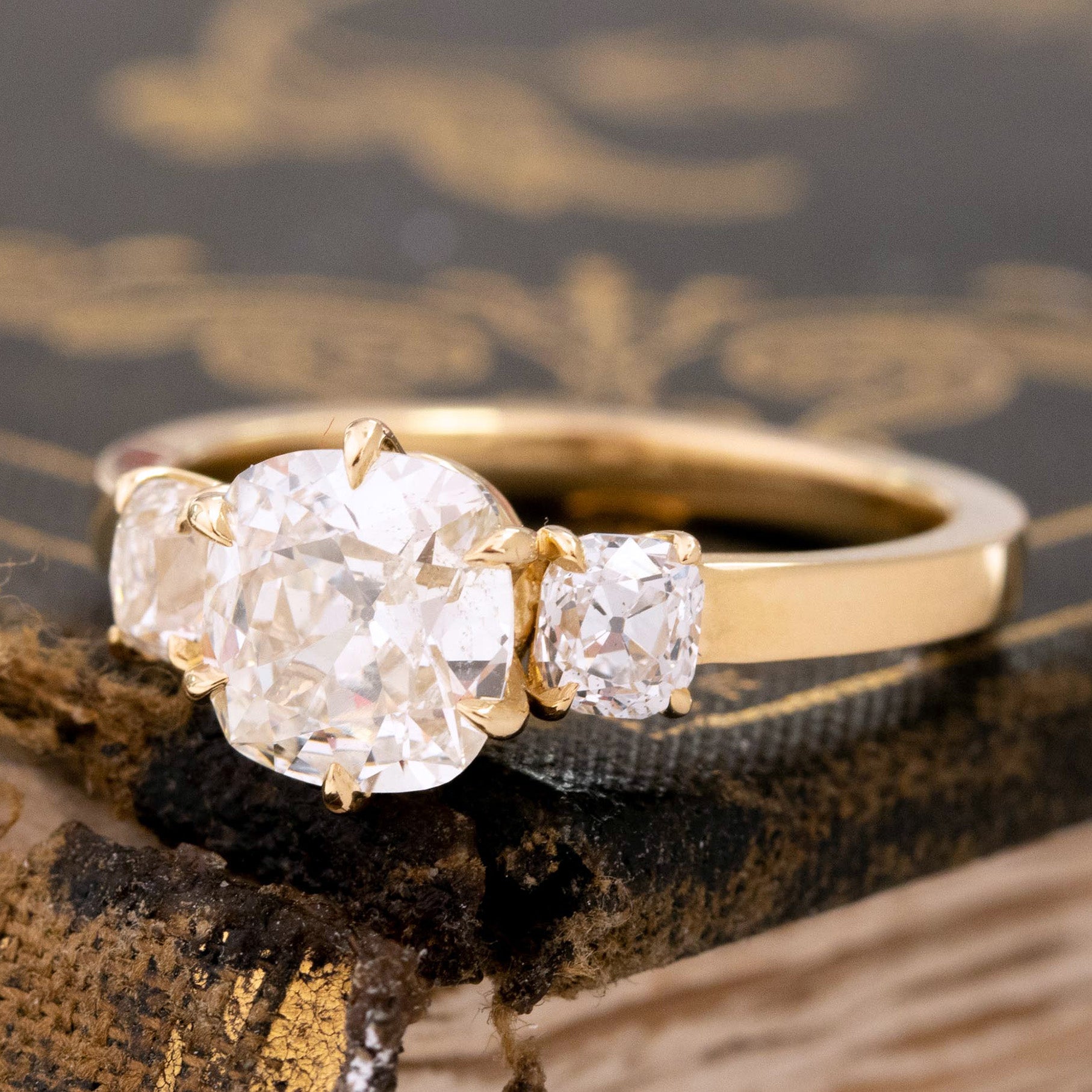 1.69ctw Old Mine Cut Diamond Trilogy Ring, GIA J SI