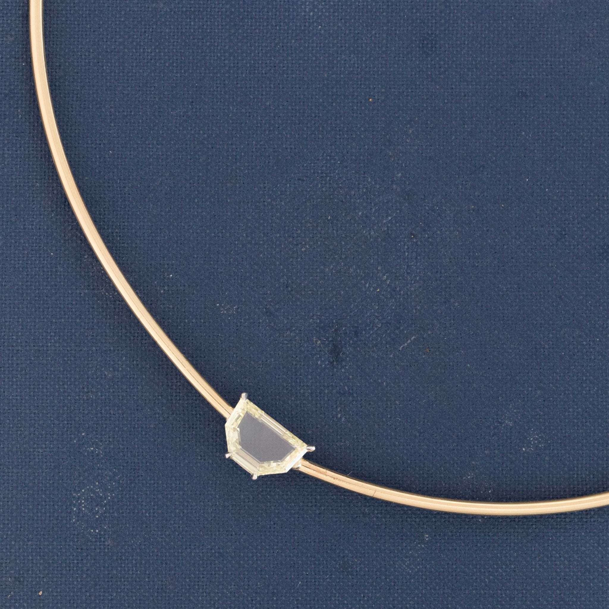 This chic collar is what happens when you take a vintage omega chain and you set a portrait cut diamond onto it! The result is endlessly cool, classic but made just a wee bit different with the addition of the portait cut. Set off center, it gives the necklace a uniquely eclectic vibe - she is truly one of a kind. The 1.70ct stone is shimmery and spready AF, adding a touch of geometric vibes to the luscious gold collar.