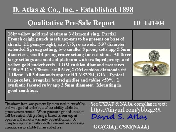1.71ctw (est) Edwardian Old Mine Cut Trios Diamond Ring, French