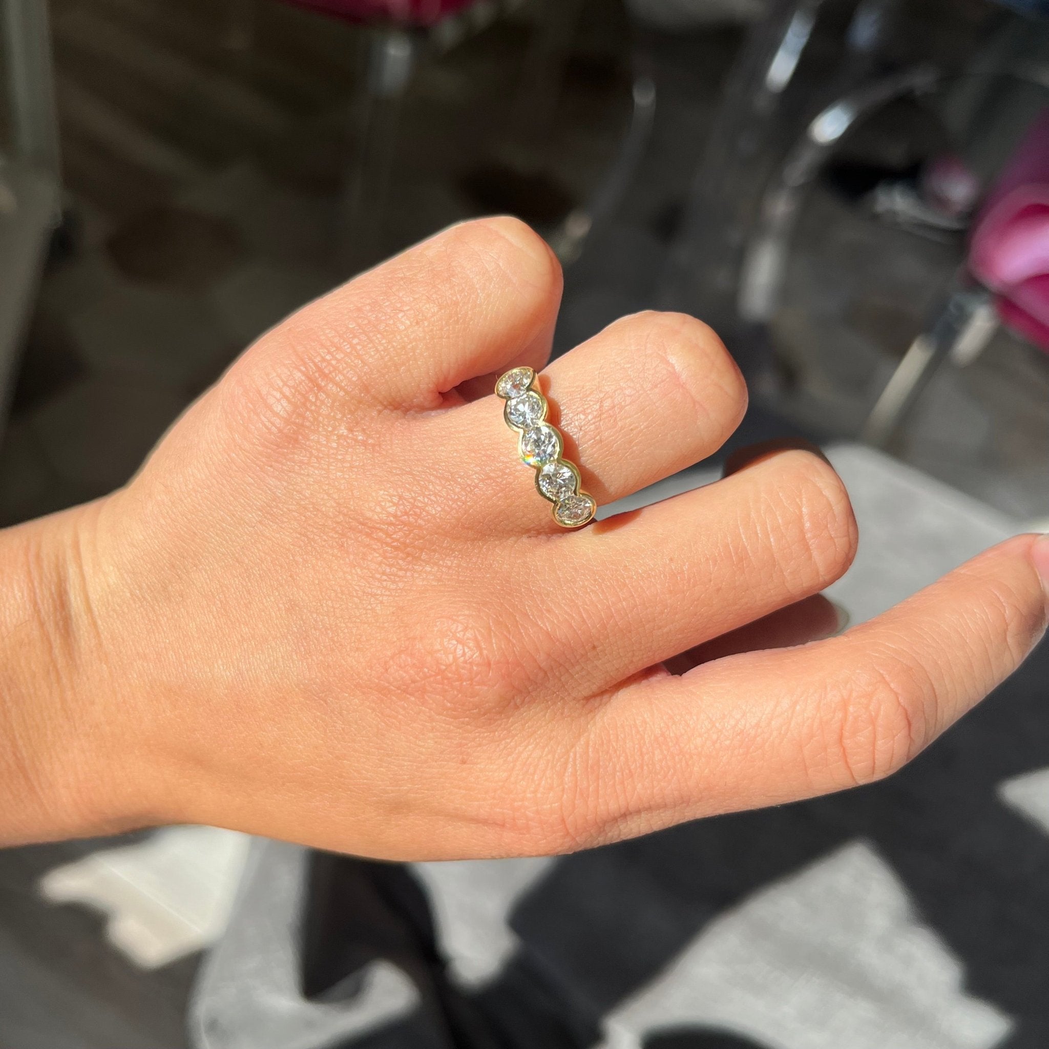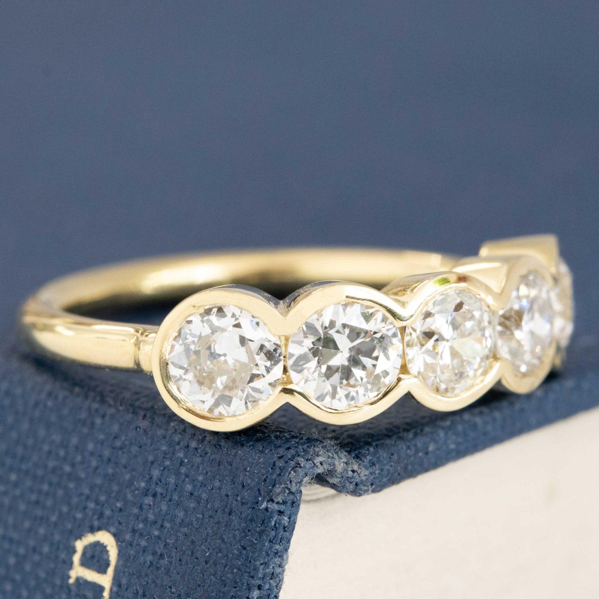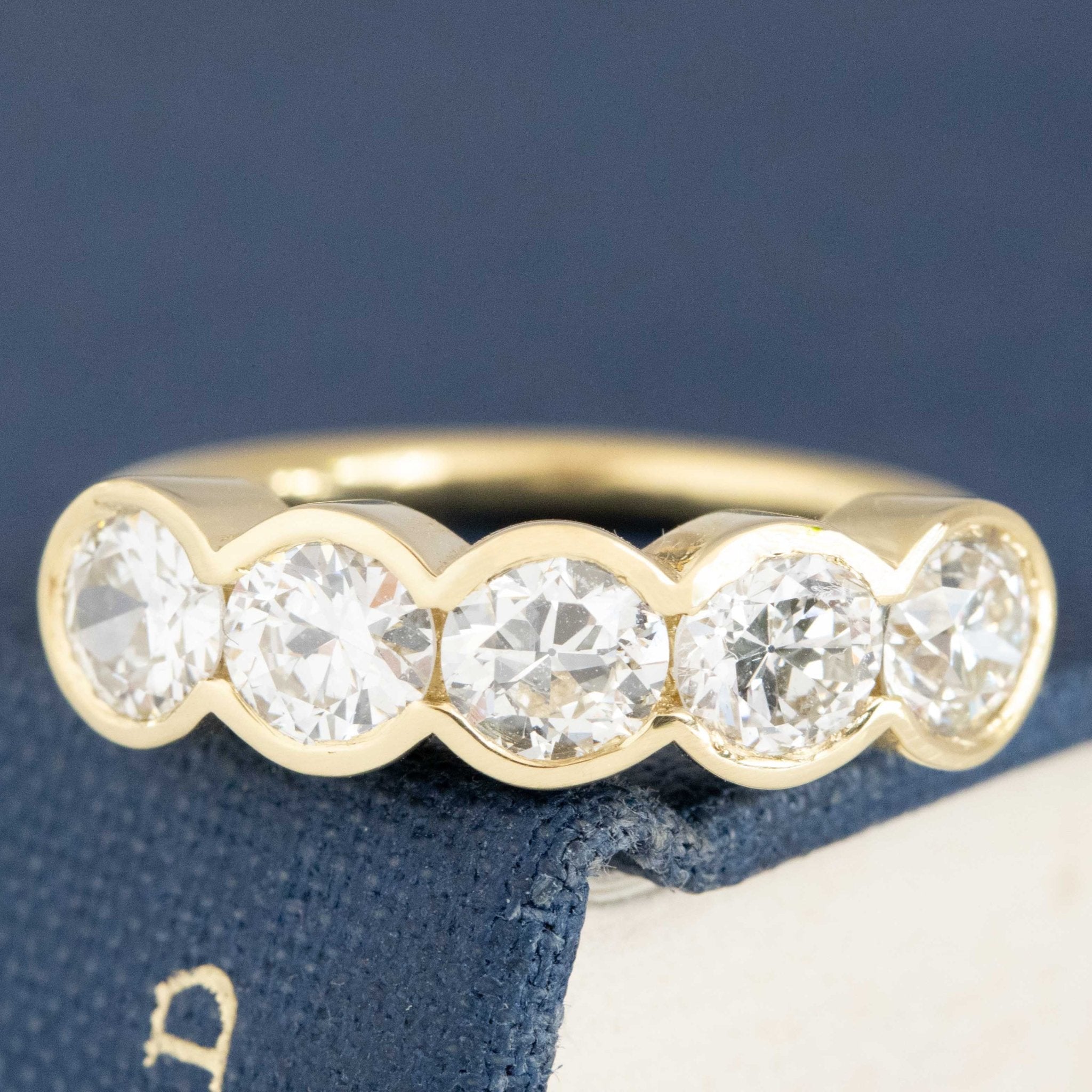 1.71ctw Old European Cut Diamond 5-Stone Half-Bezel Band
