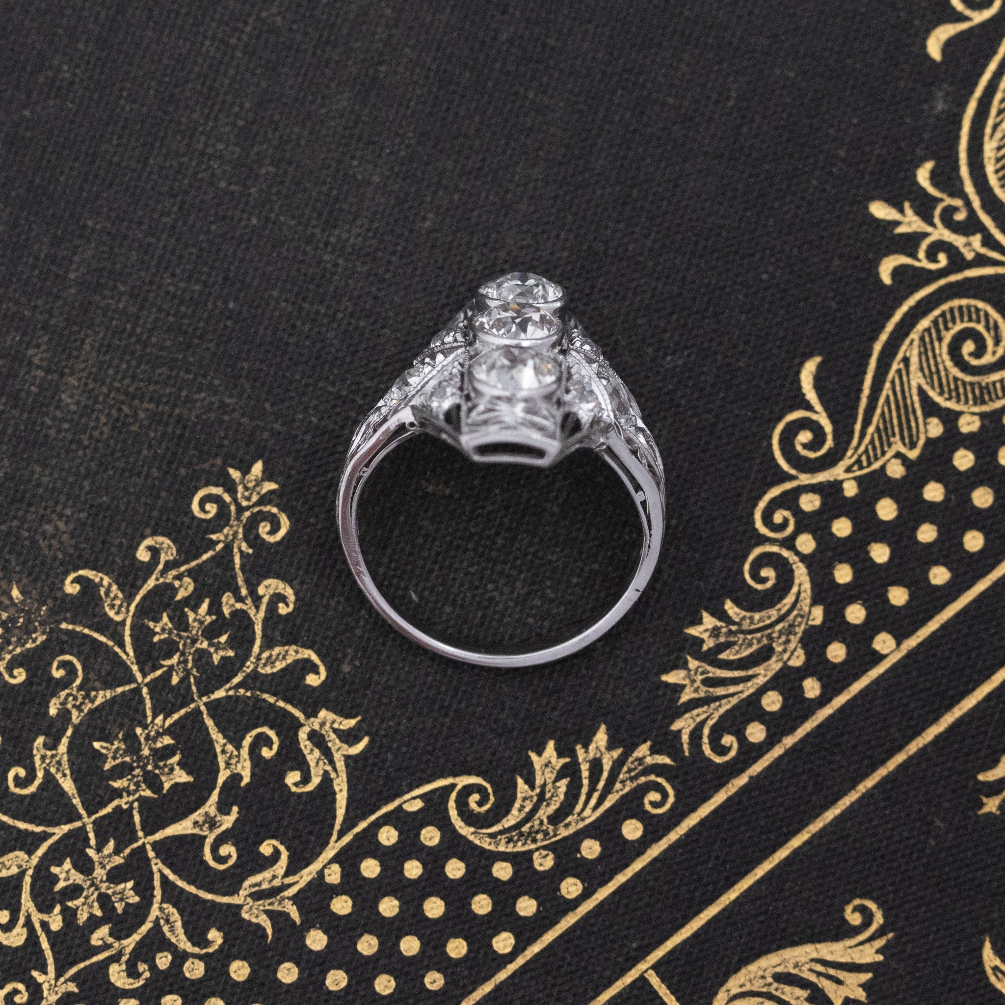 1.72ctw Old European Cut Diamond Trilogy Navette Ring