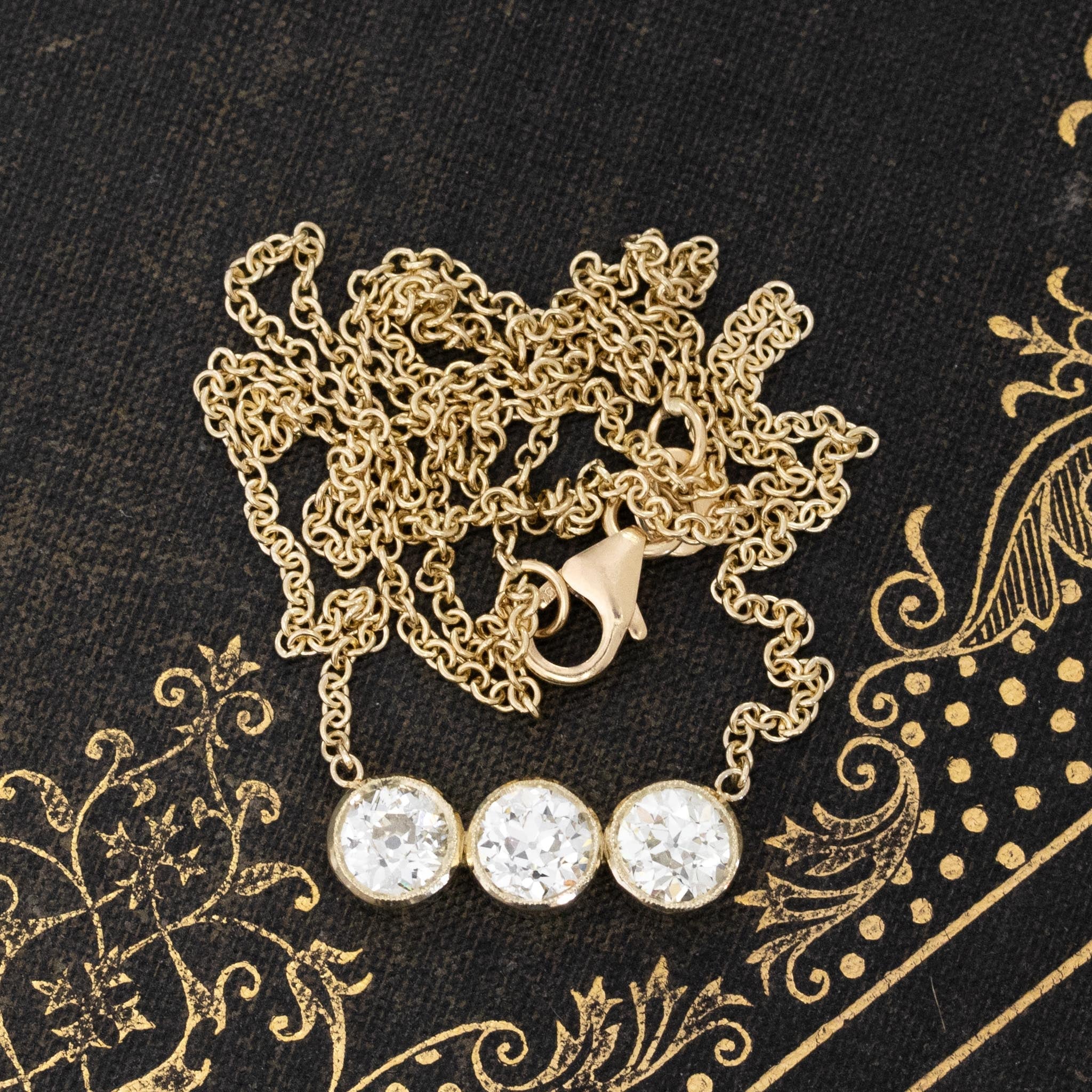 1.74ctw Old European Cut Diamond Trilogy Bezel Pendant