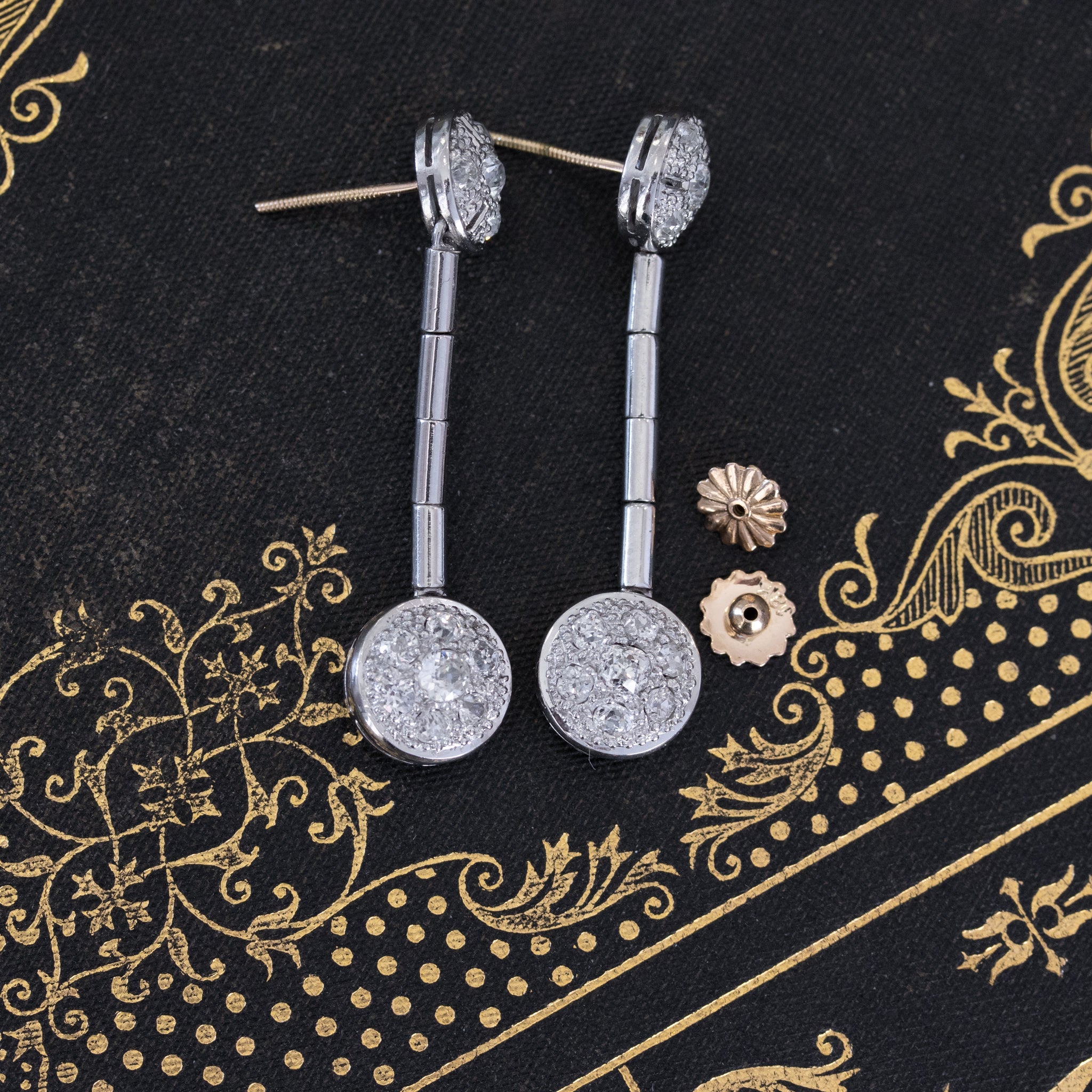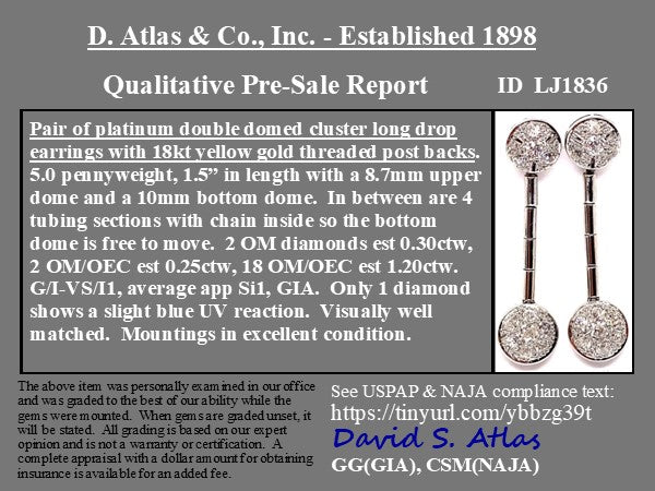 1.75ctw Vintage Diamond Cluster Drop Earrings