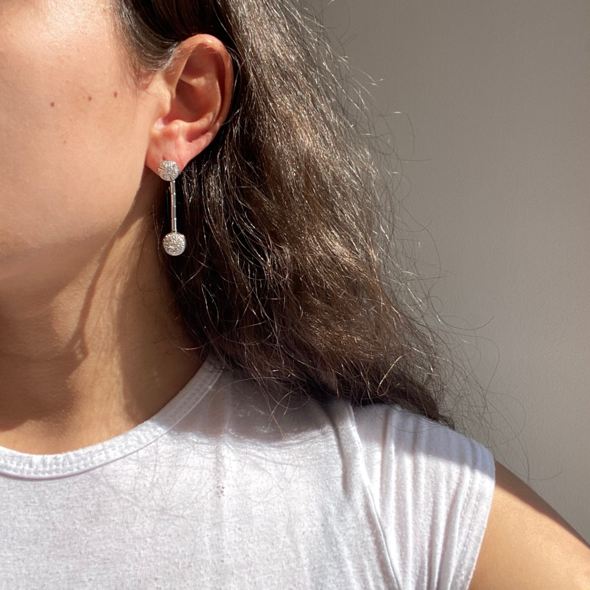 What an incredibly chic pair of long drop earrings! Simple in style and design, but loads of personality as the bottom clusters articulate gracefully with every movement. If these do not remind you of the 60s, I don't know what will! Yet another piece that will complete any outfit effortlessly.