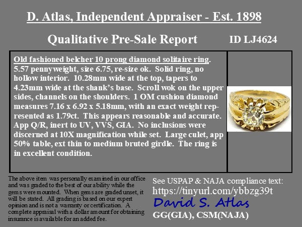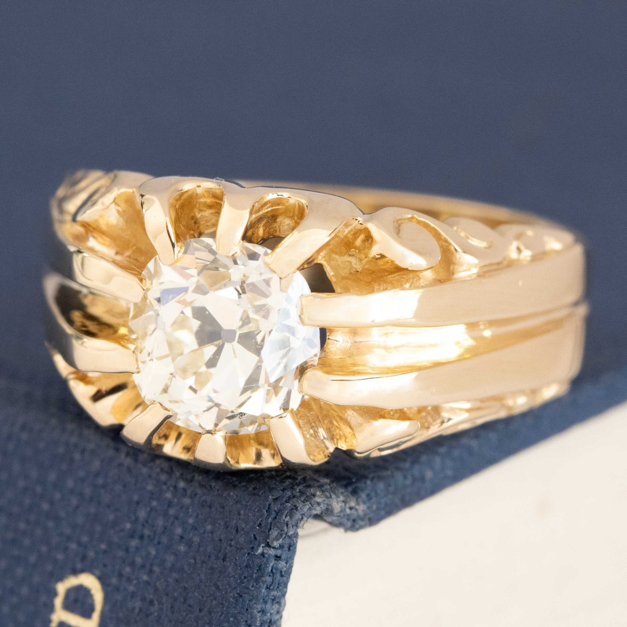 1.79ct Vintage Old Mine Cut Diamond Belcher Solitaire