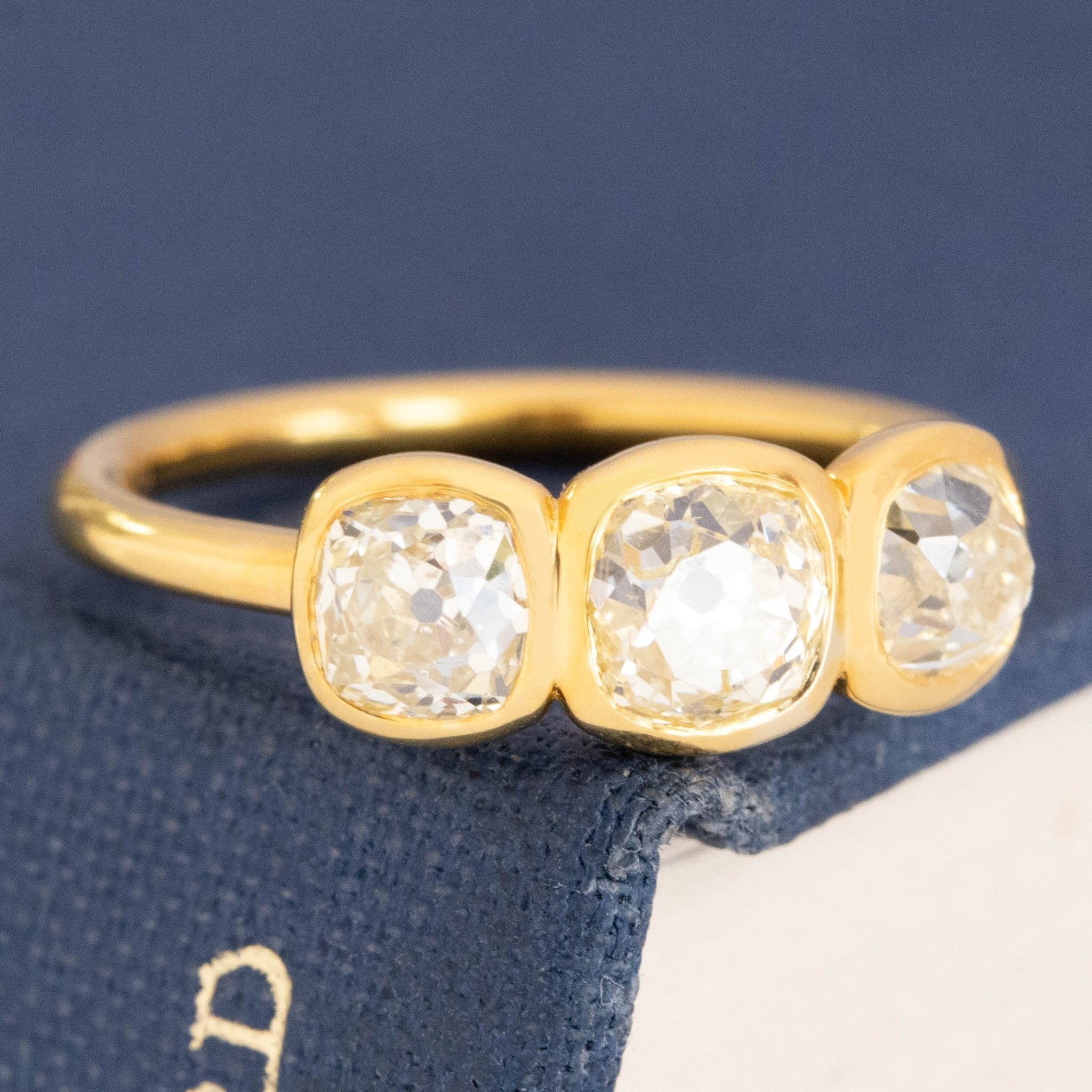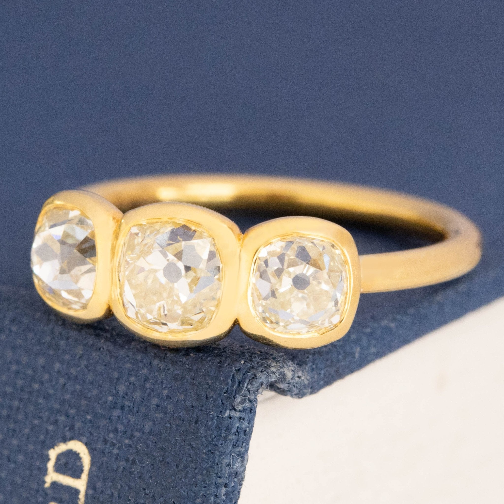 1.86ctw Fancy Light Yellow Old Mine Cut Diamond Bezel Trilogy Ring