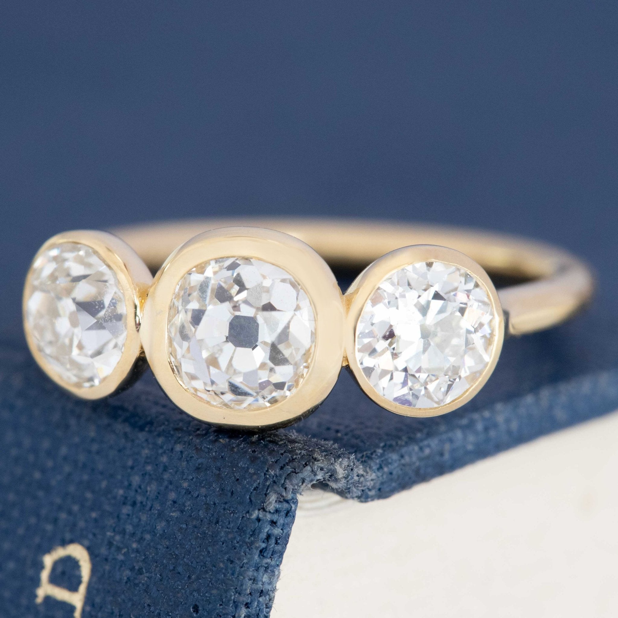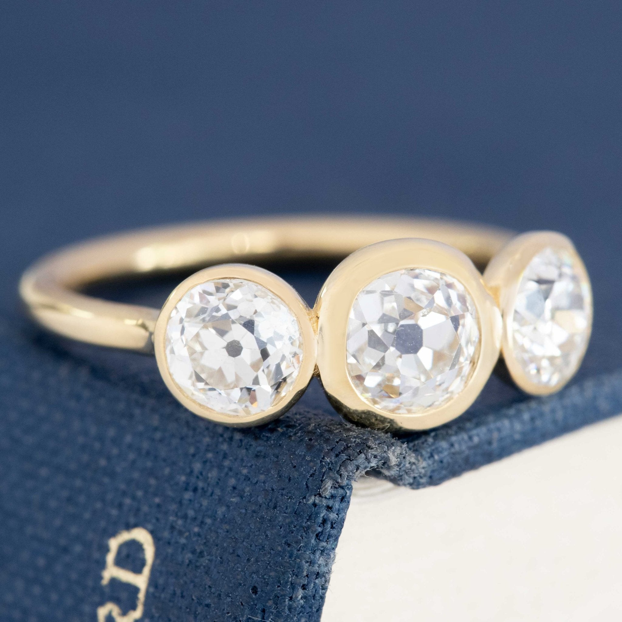 1.91ctw Old European & Old Mine Cut Diamond Bezel Trilogy Ring