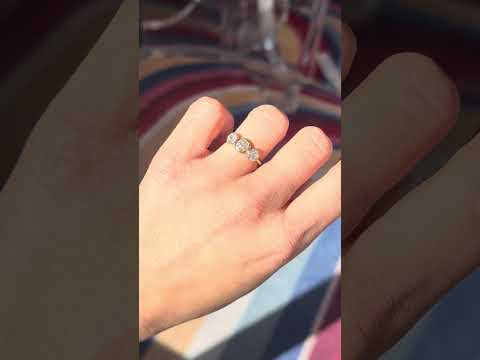 Trilogy rings are meant to represent the past, present, and future. These bezel-set trilogy rings with antique old cut diamonds are a perfect example of that! Chunky and sparkly OECs are wrapped in gold bezels and a chunky old mine cut sits center stage. They sparkle like little buttery fireballs and span beautifully across the top of one’s finger.