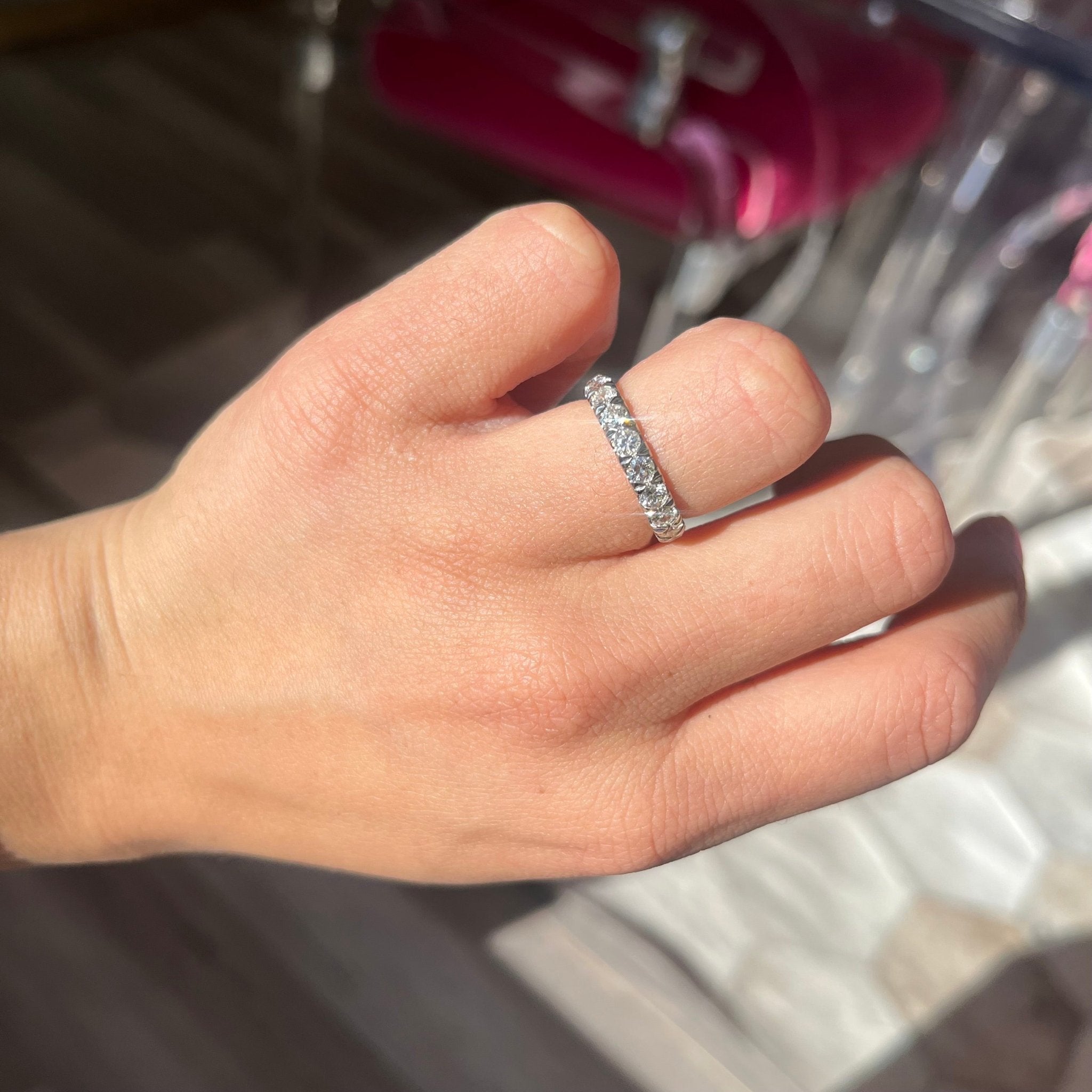 The most timeless old European cut diamond band on the block! We acquired a large parcel of the prettiest recycled Old European cut diamonds, all matched in faceting and specs, so the only option was to throw them in a beautiful band! Spready, buttery in feel, and incredibly comfortable on the finger because of its rounded silhouette, this band is a perfect addition to one's jewelry stack.