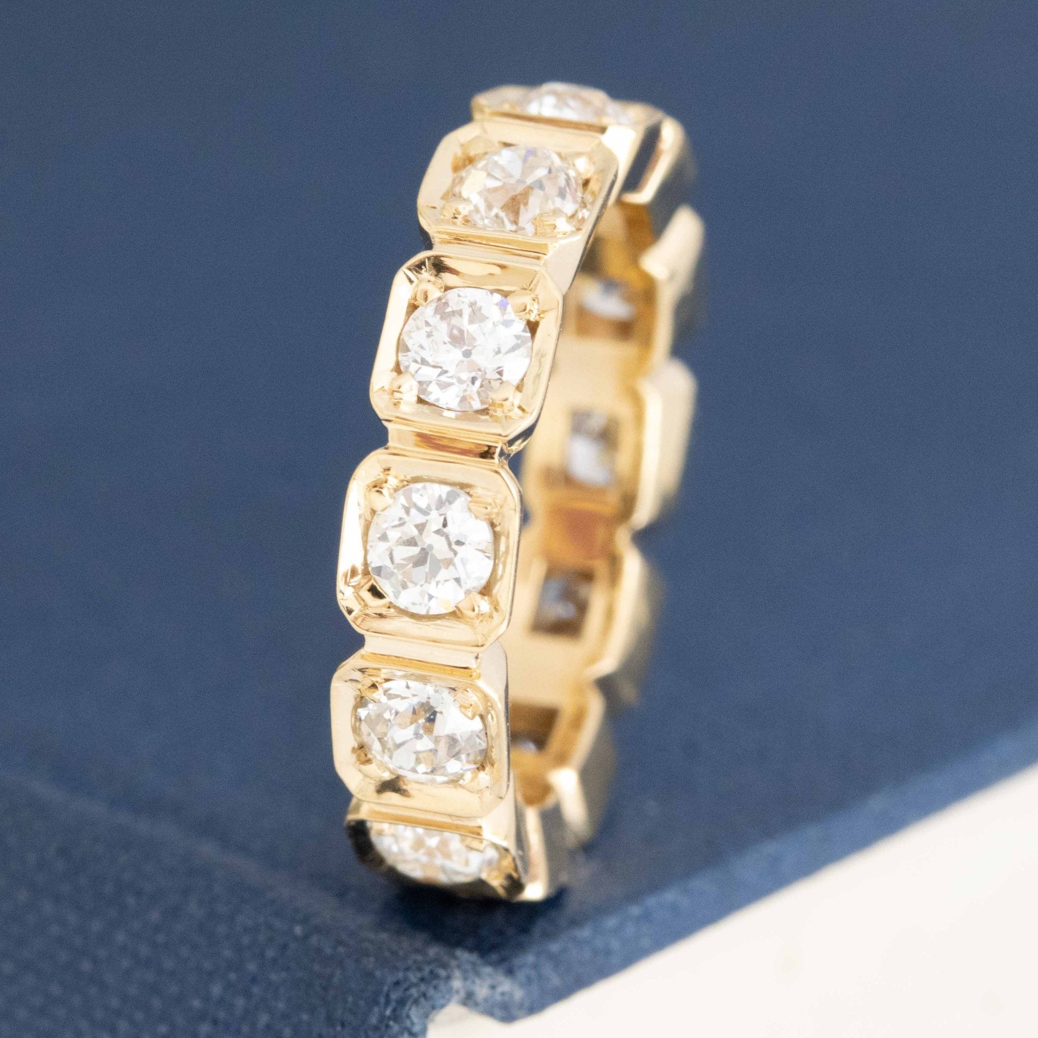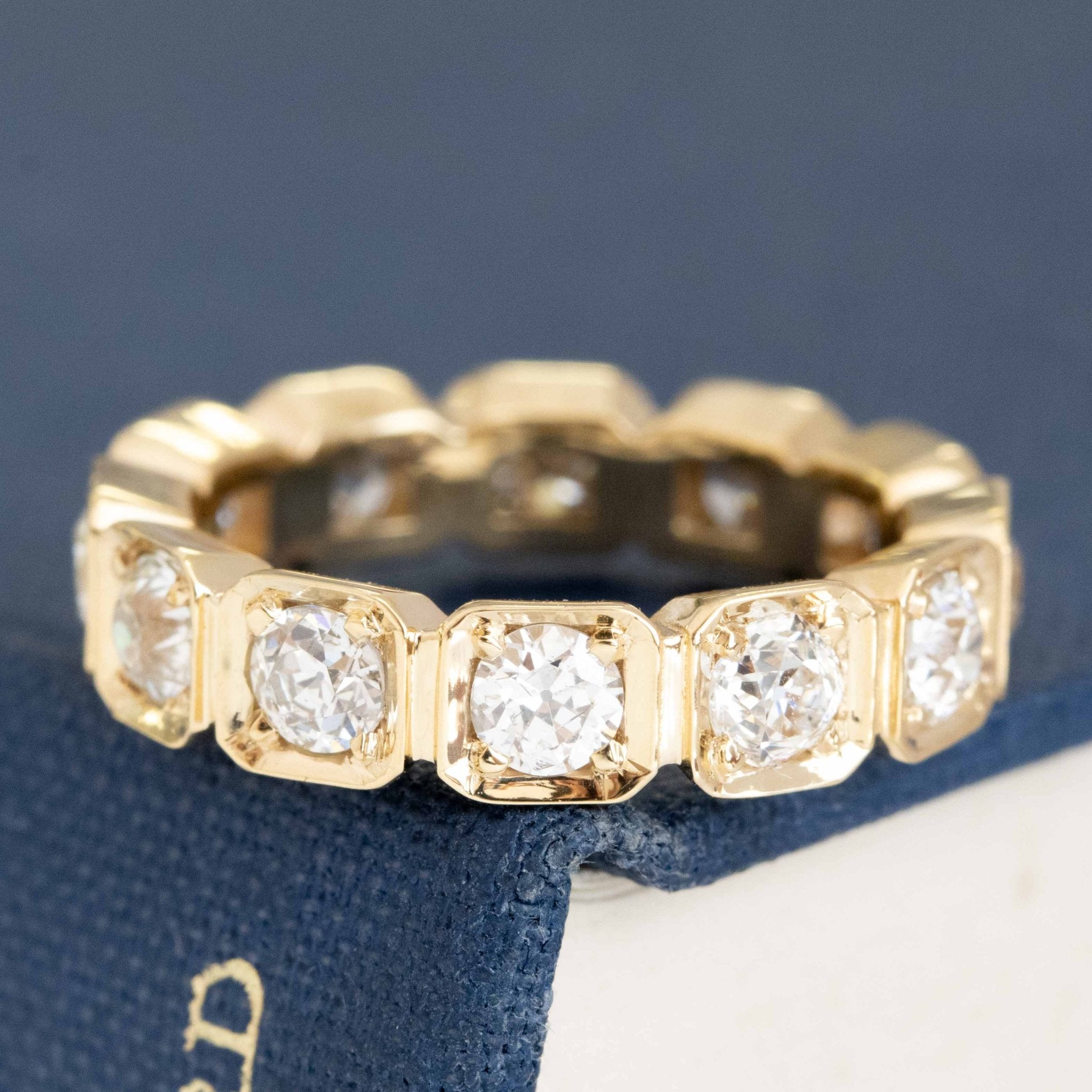 The perfect band for those needing with a little more presence on the finger! We took a parcel of beautifully-matched old European cut diamonds and bead set in these square frames. Lower profile, the band is certainly big and bold!