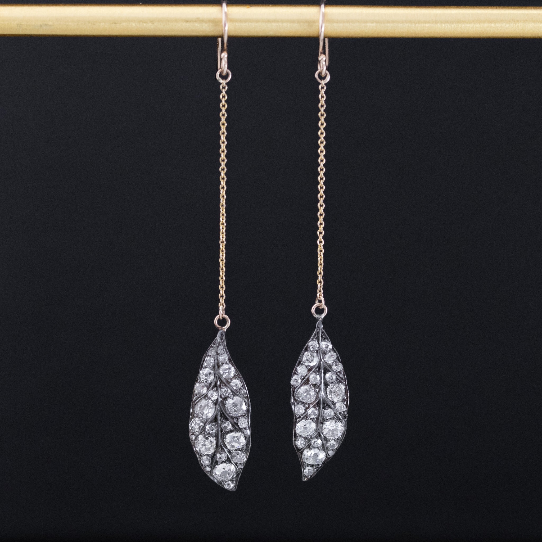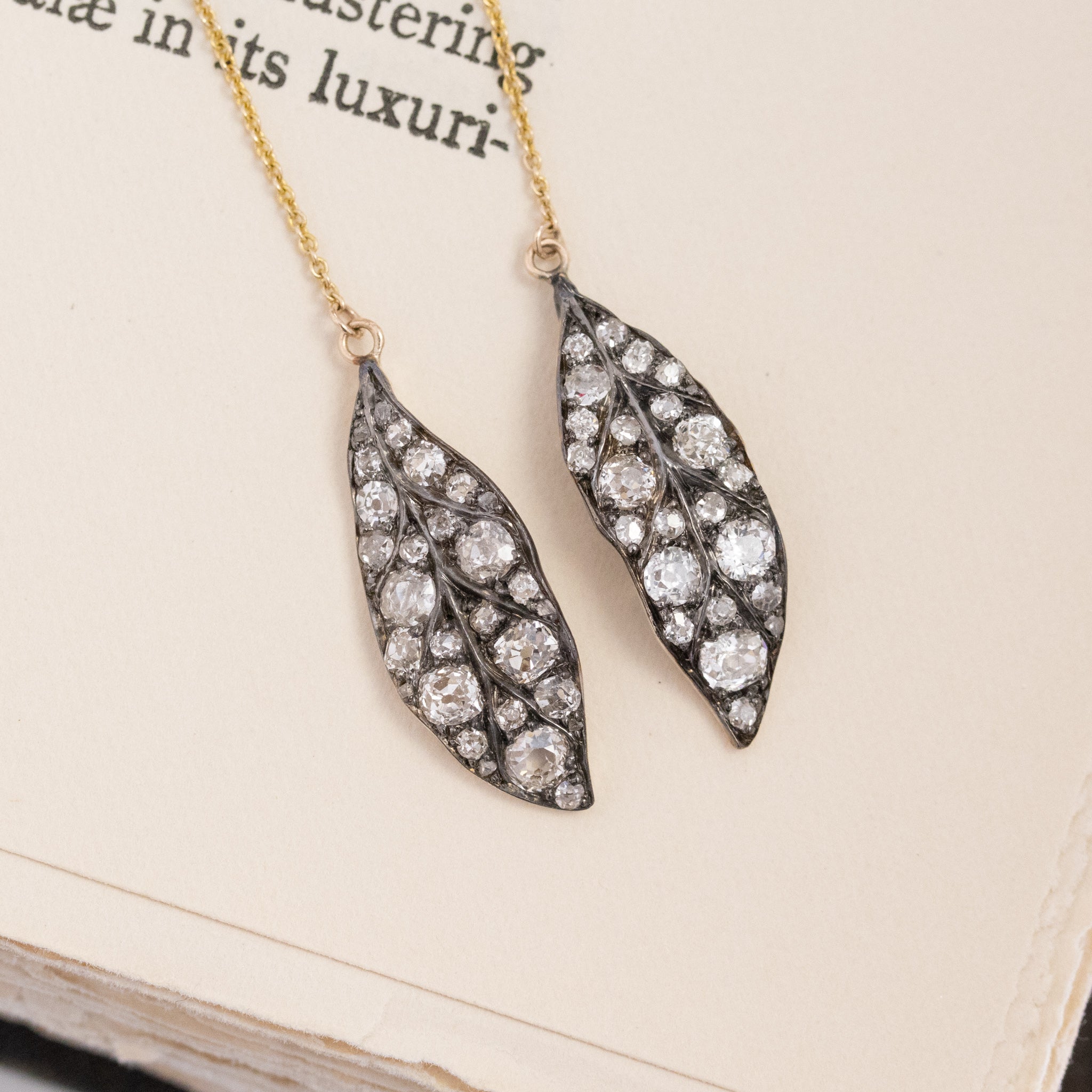 Studded with Old Euros and old mine cuts, these bad boys have sparkle like no other. Suspended off of delicate yellow gold chains, they allow for a gentle movement that helps the diamonds give off insane fire. Chic and sexy with tons of old cut charm.