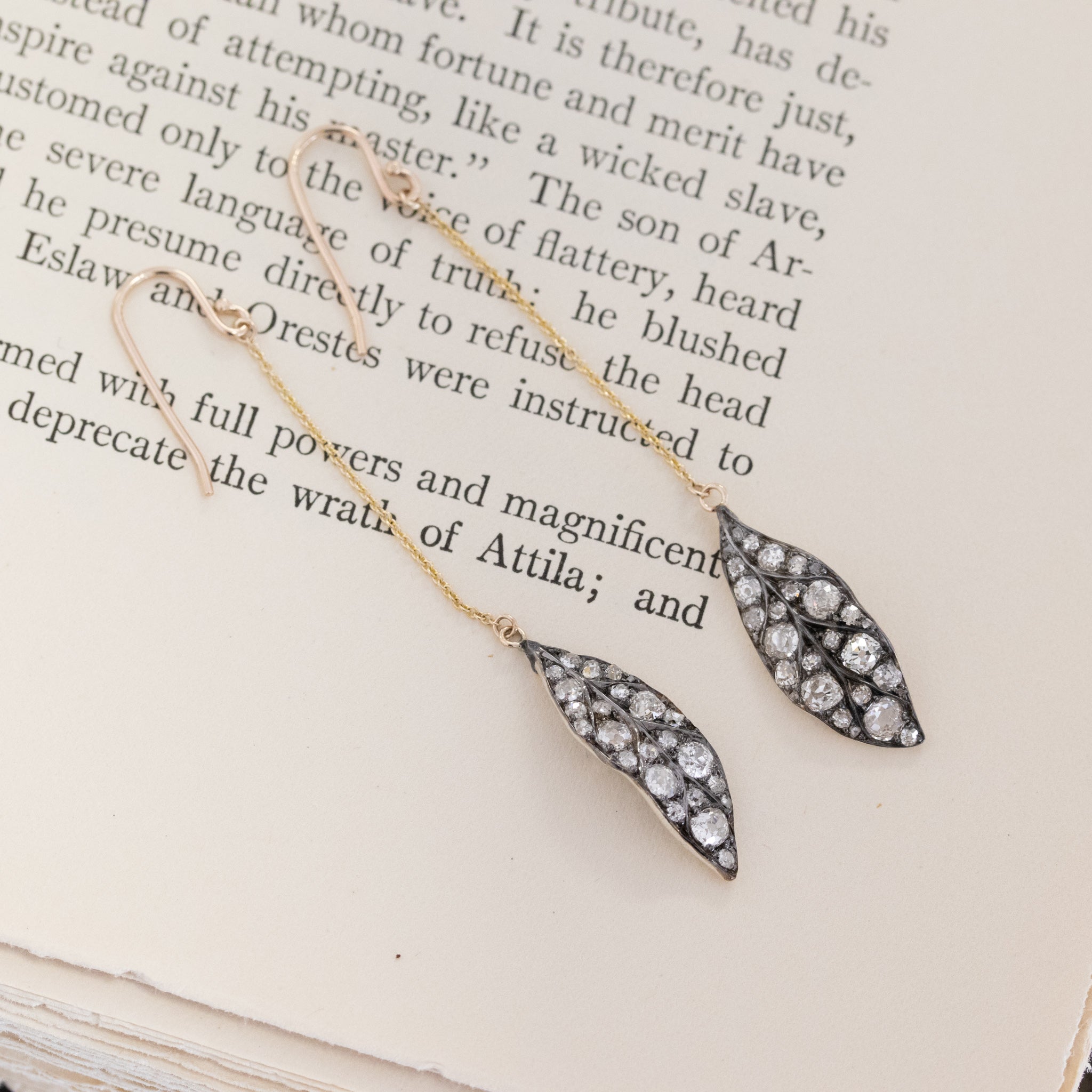 We found a Victorian leaf motif brooch that looked, forlorn and unworn for decades. Re-imagined and repurposed into these charming and slightly dramatic dangly earrings - we cannot get over how beautiful they are!