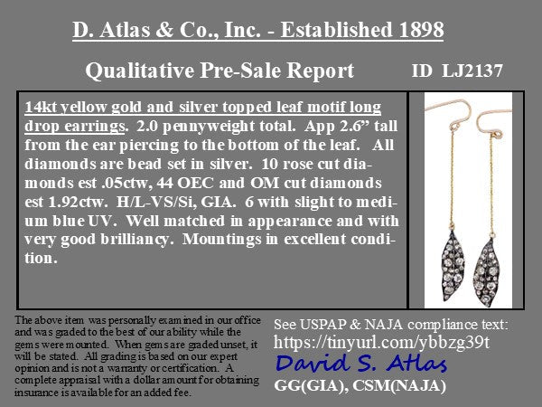 1.97ctw Leaf Component Diamond Dangle Earrings