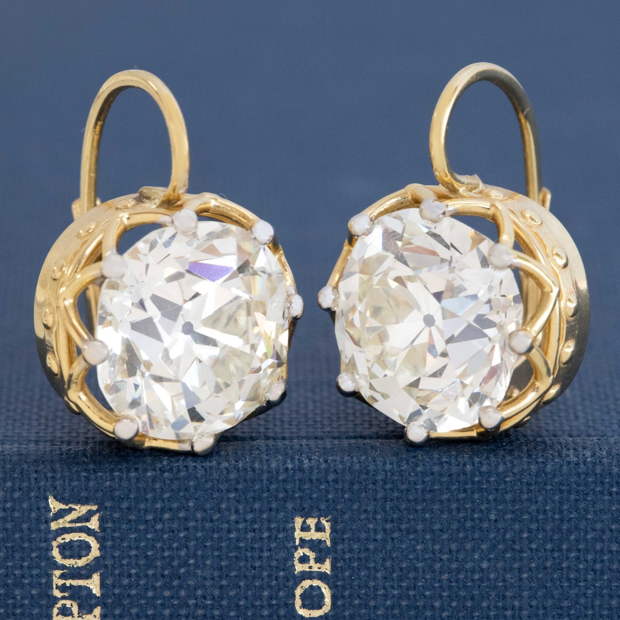 14.20ctw Old Mine Cut Diamond Dormeuse Earrings, GIA