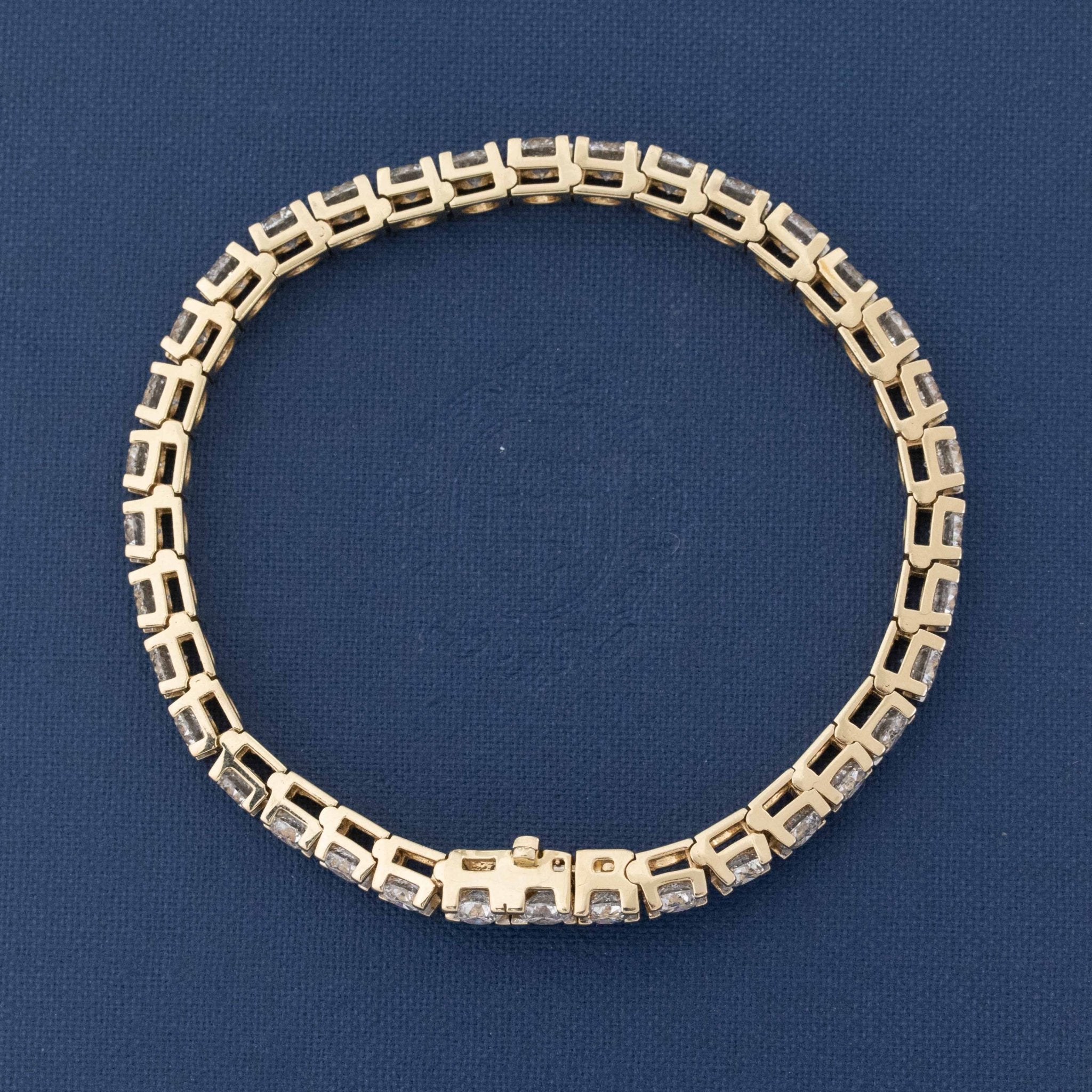 You cannot get any more classic than a diamond tennis bracelet in yellow gold! Featuring bright round brilliant diamonds, all well-matched and sparkly. The perfect, blinged-out addition to the rest of your wrist stack.