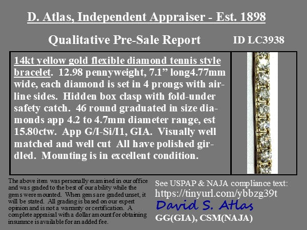 15.80ctw Round Brilliant Cut Diamond Tennis Bracelet