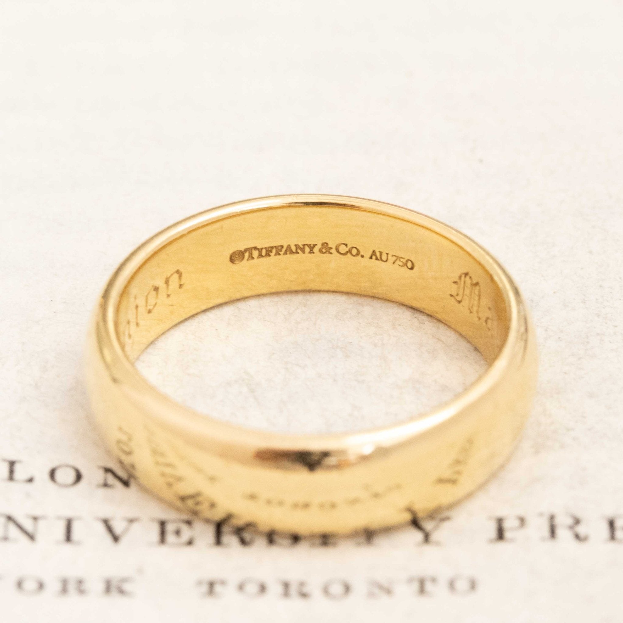 A beautiful and timeless wedding band from none other than Tiffany & co - with the sweetest engraving, no less ("May Lord bless this union"). Perfect in both scale and width - we don't think anyone can beat the beauty of a love-filled band.