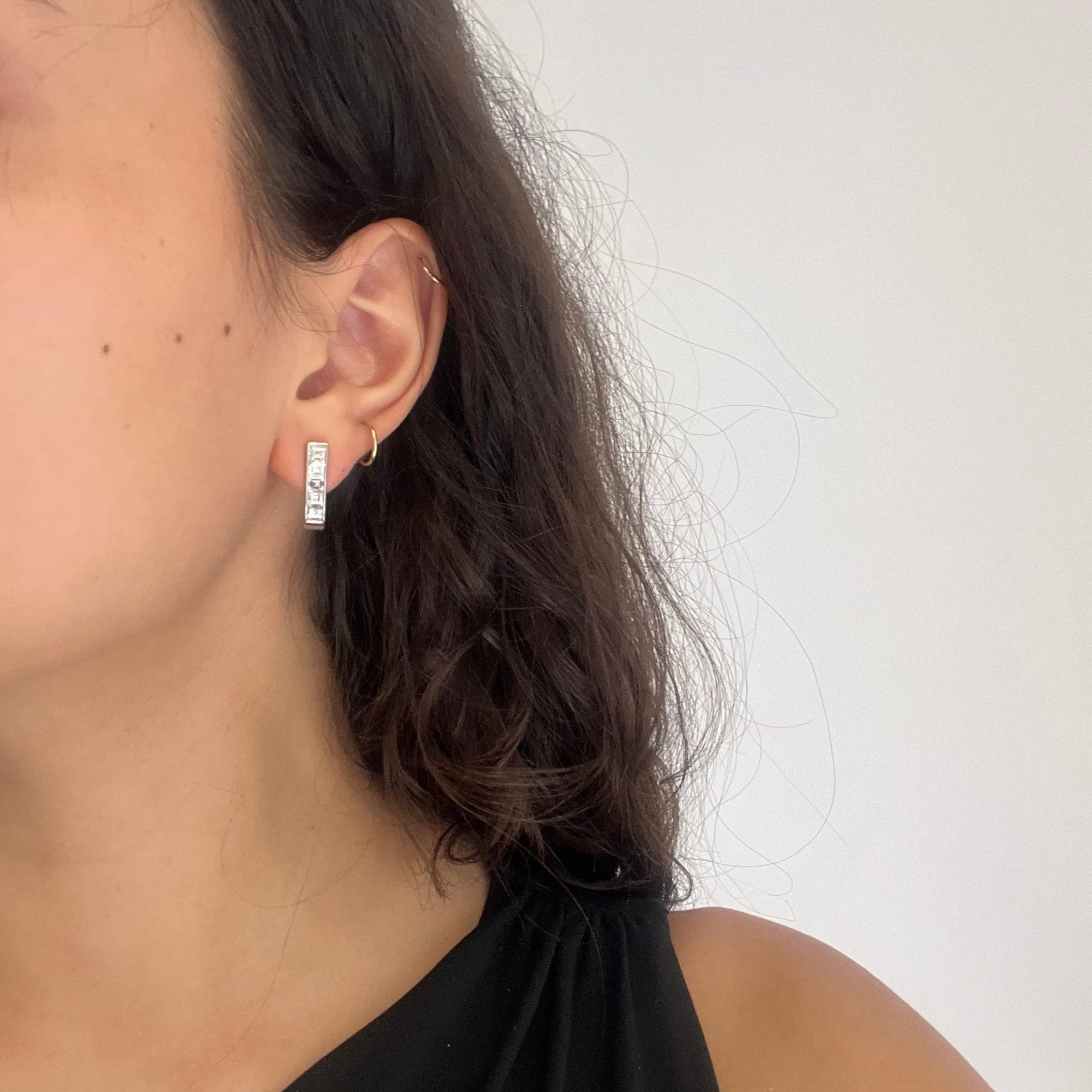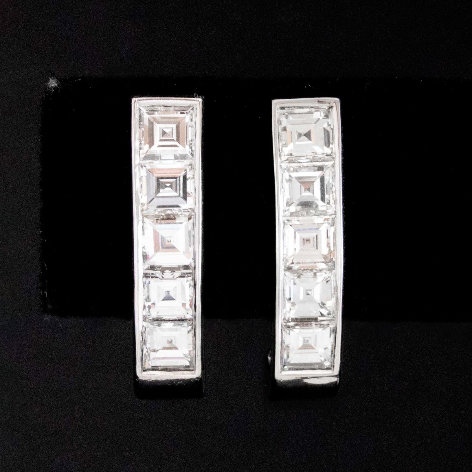 Elegant in its simplicity, this pair of carre cut diamond hoops hug the lobes gracefully, and are perfect for daily wear, transitioning beautifully from day to night.