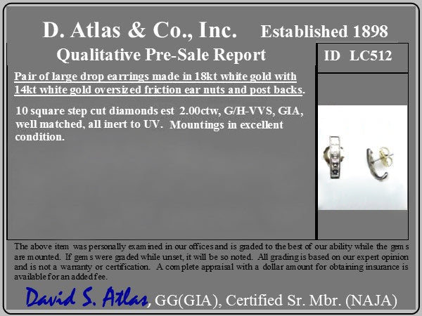 2.00ctw Carre Cut Diamond Bar Drop Earrings