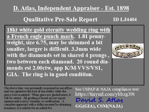 Classic and timeless - this is the diamond eternity band that simply works with almost any ring stack or solitaire. Perfect in its scale and low set - she is French to boot! Diamonds are super bright and fiery too.