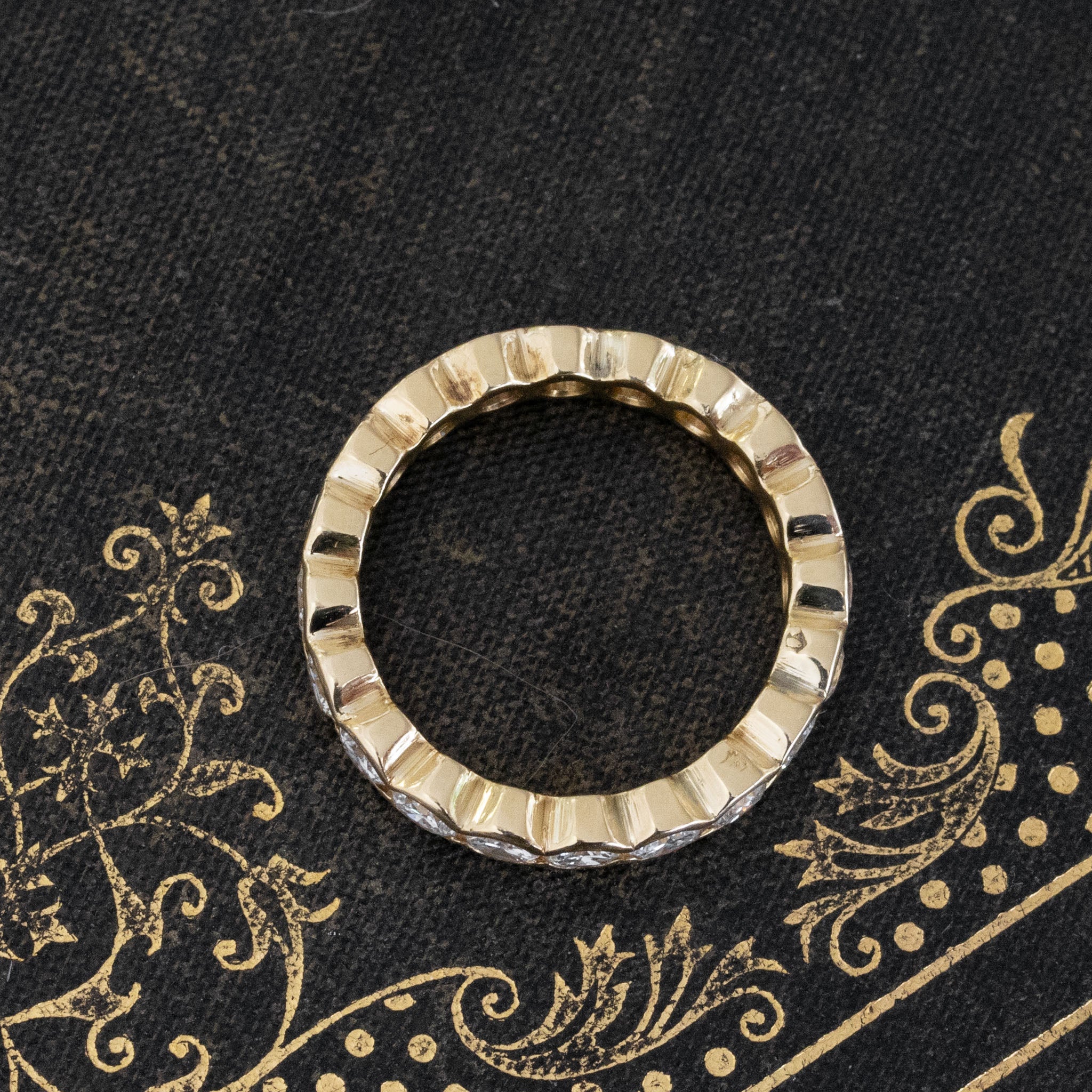 A classic diamond eternity band with yellow gold and round brilliant cut diamonds - an easy, breezy piece of jewelry that is ready to add to your collection! The diamonds are set in a half-bezel style, making it appear as though each stone is "kissing" the one right next to it. Perfect for daily wear and stacking with the rest of your favorite bands!