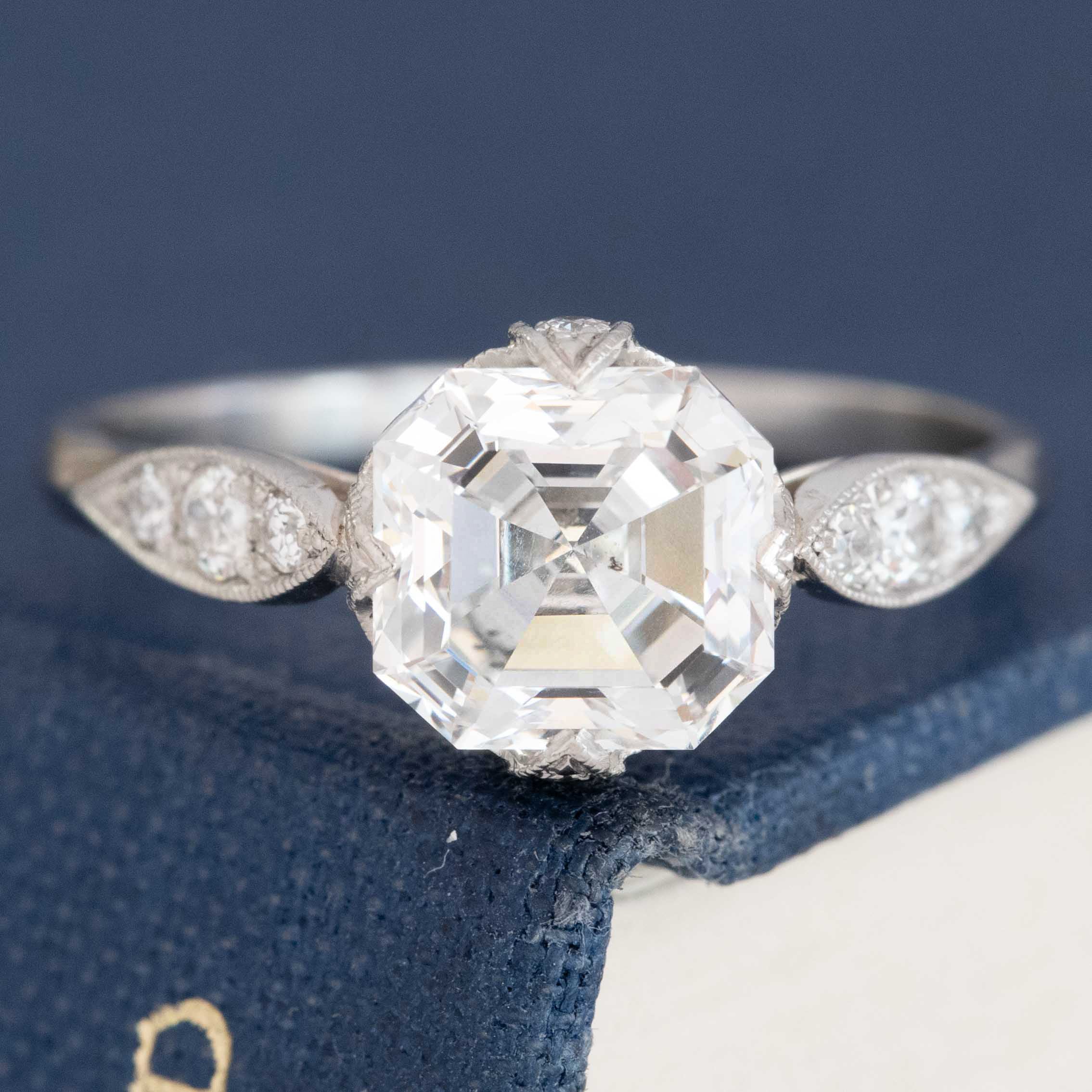 Beyond beautiful - my favorite "flavor" asscher cut diamond shape. I adore the octagonal vibes of the diamond with its dramatic cut corners and that crisp, visible cross-faceting across the table—a mesmerizing diamond with its small table and culet.