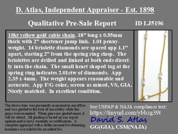 2.01ctw Briolette Cut Diamond Station Necklace