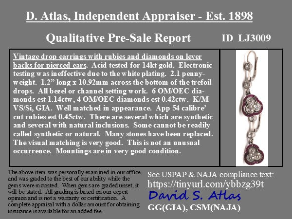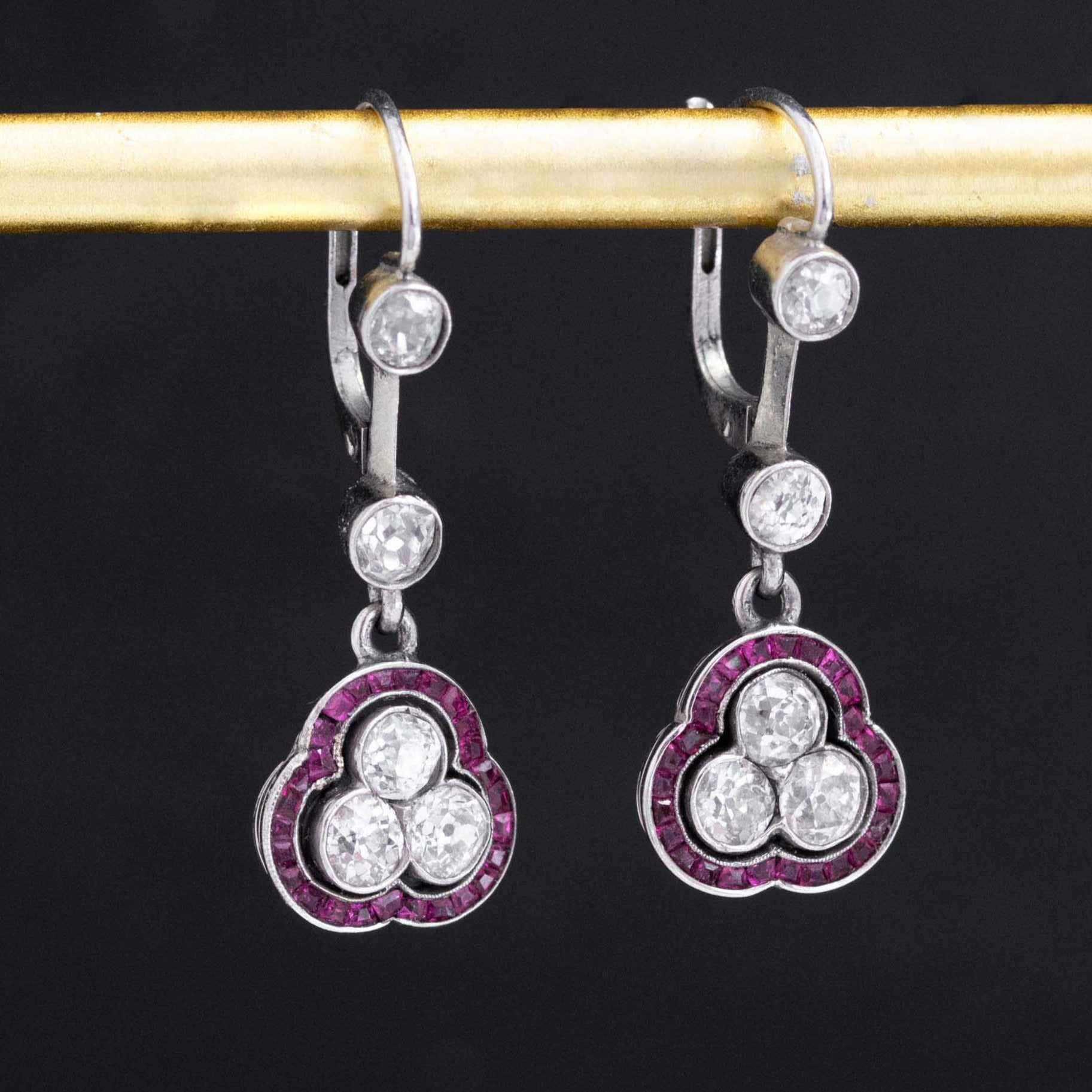 2.01ctw Old European Cut Diamond & Ruby Drop Earrings