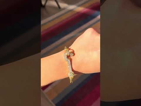 Totally enamored by this diamond studded hook bangle in yellow gold (what can I say - I LOVE the took motif in jewelry!). Bold and assertive on the wrist, she definitely makes a statement with its rope detail "arms."