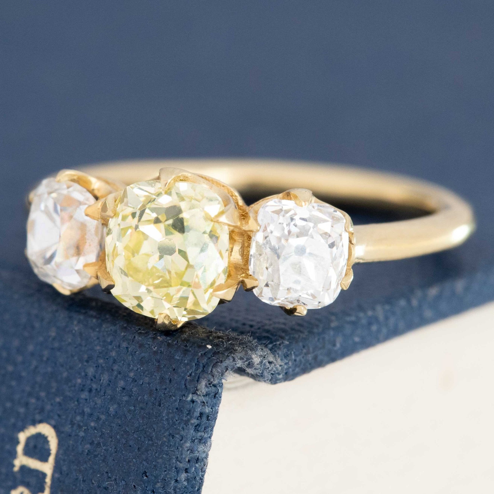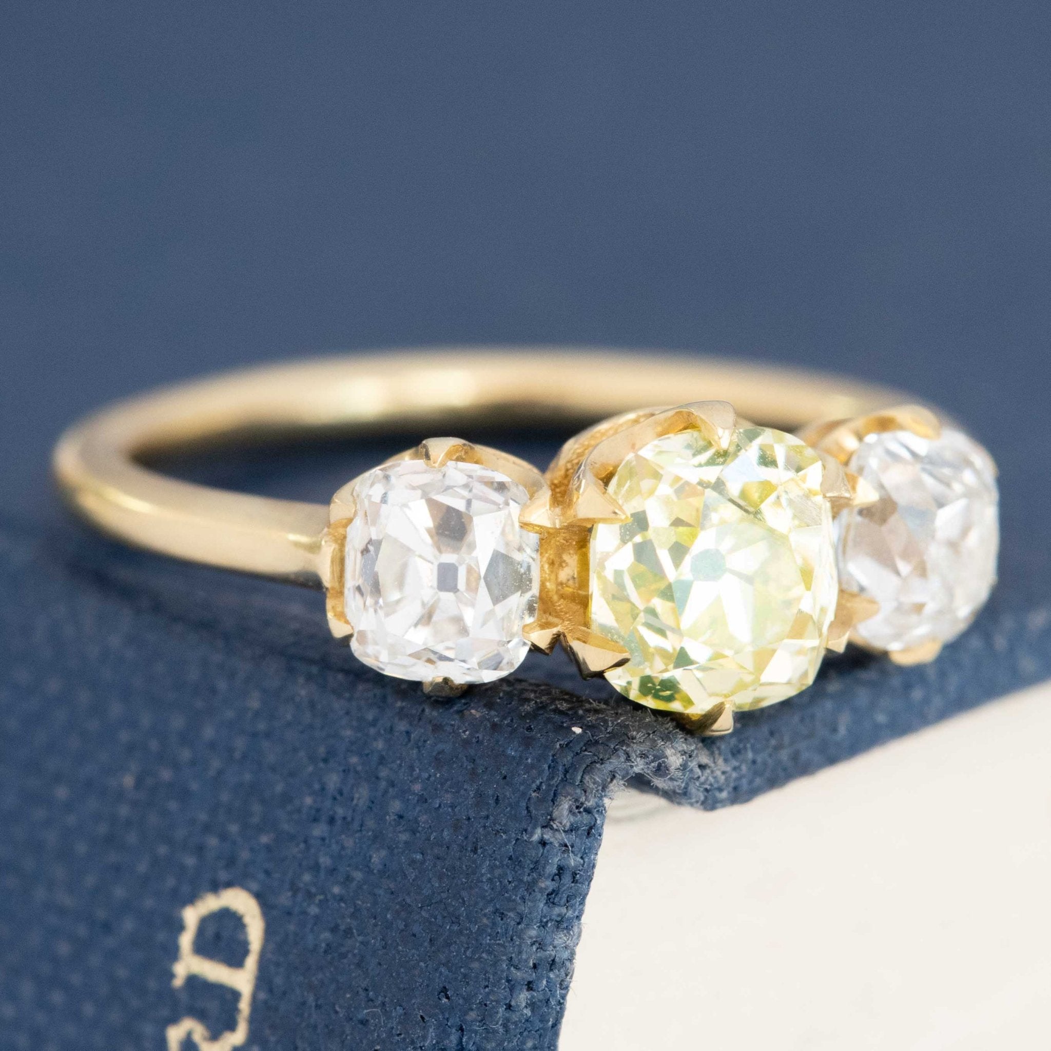 2.03ctw Old Mine Cut Diamond Trilogy Ring, GIA Fancy Color
