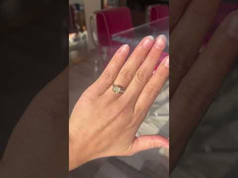 The perfect choice for those looking for a ring that is sleek, and - its linear lines making for a totally fluid look and vibe on the finger. The center diamond is a gorgeous Asscher cut diamond with beautiful, crisp facets and pure sunshine in terms of color. Incredibly elegant.
