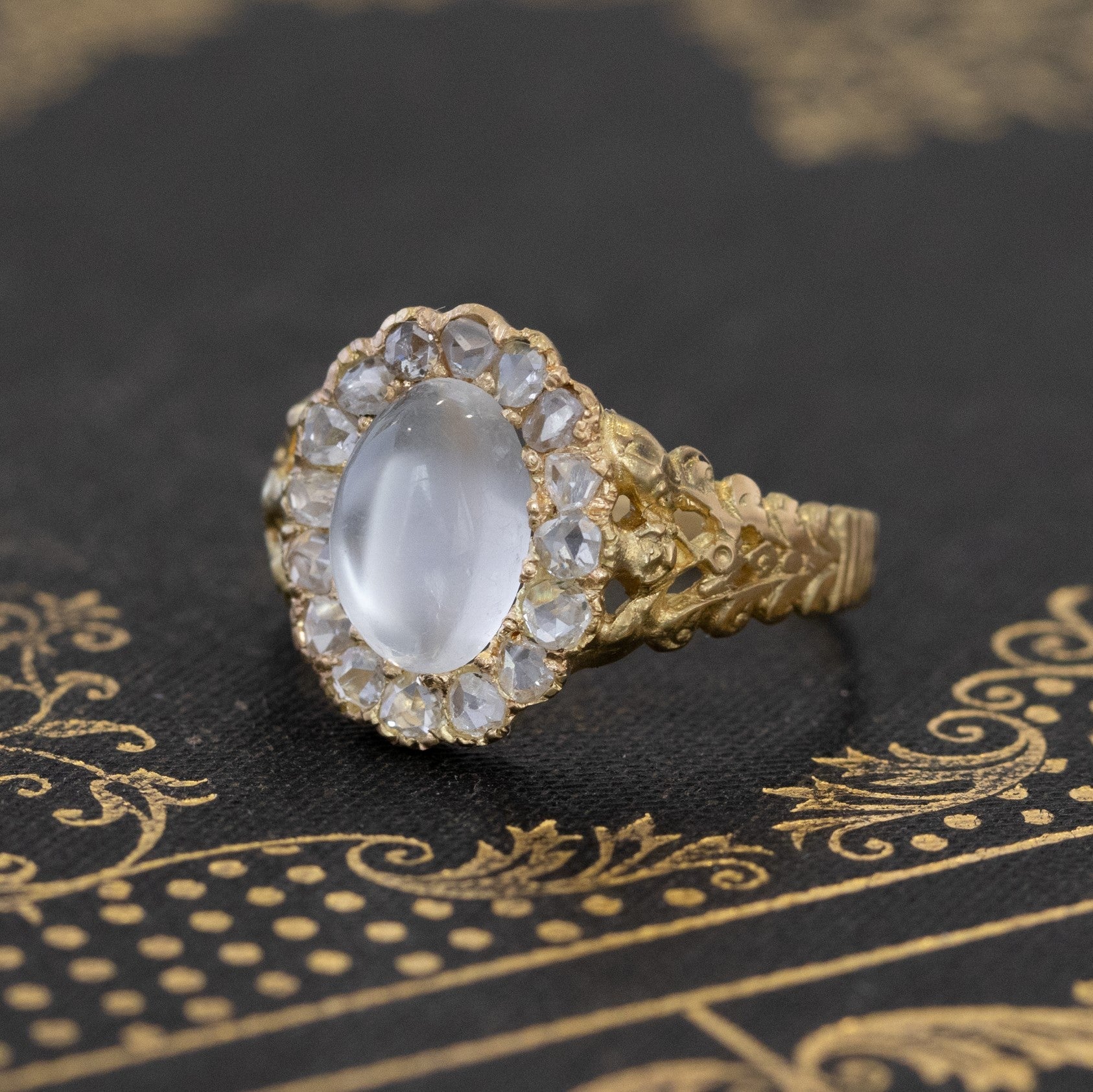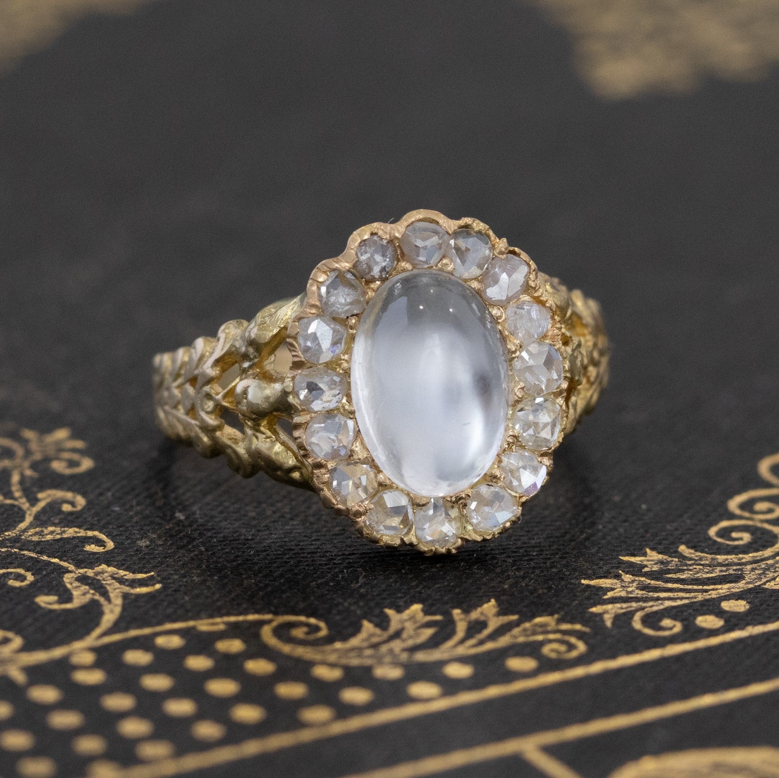 2.12ctw Moonstone & Diamond Rose Cut Halo Ring