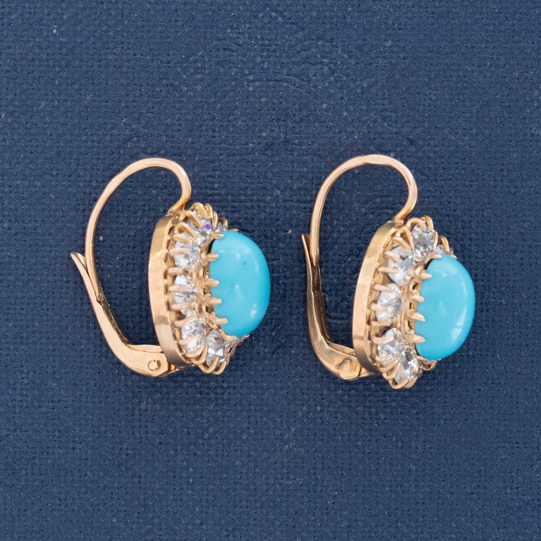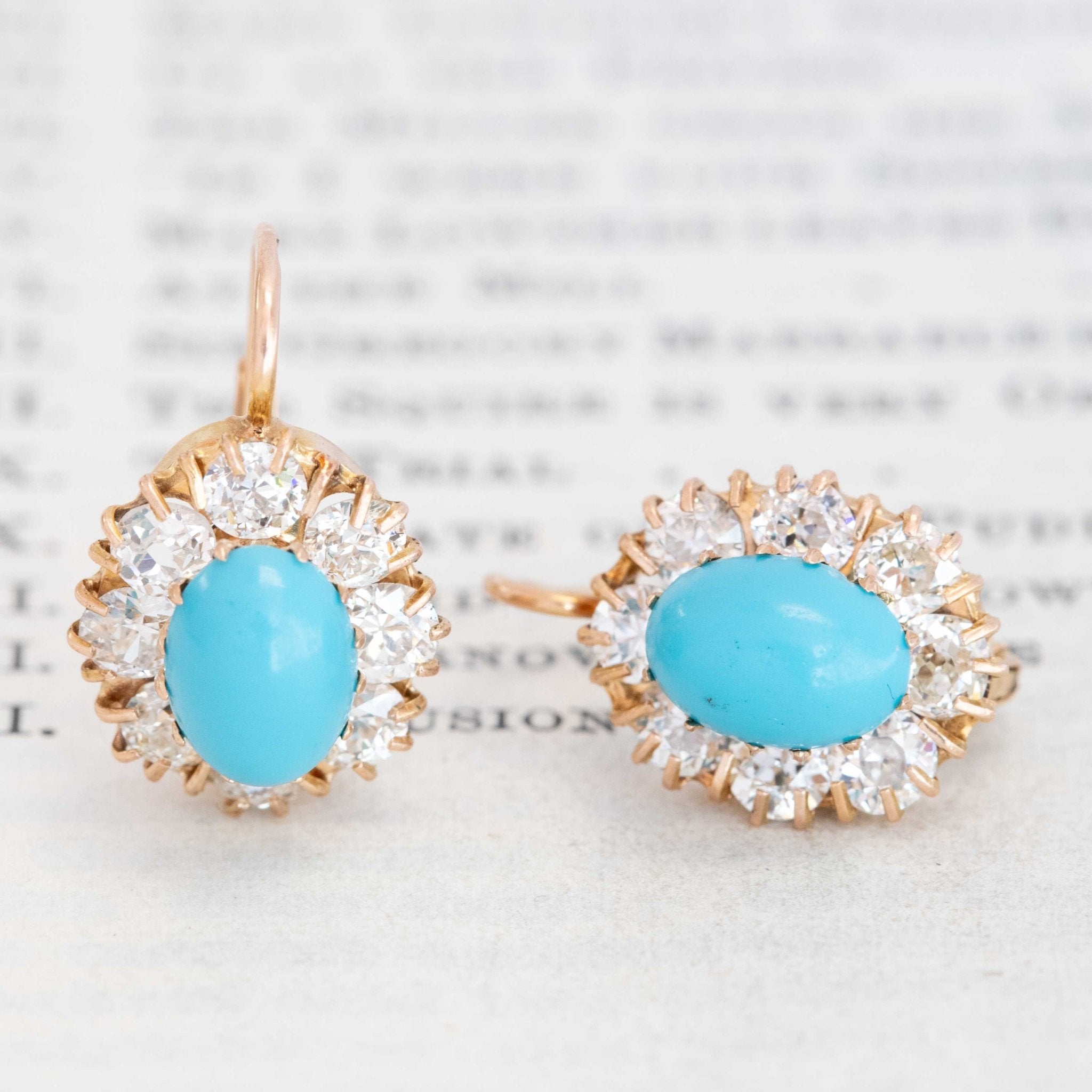 2.15ctw Old European Cut Diamond & Turquoise Cluster Earrings