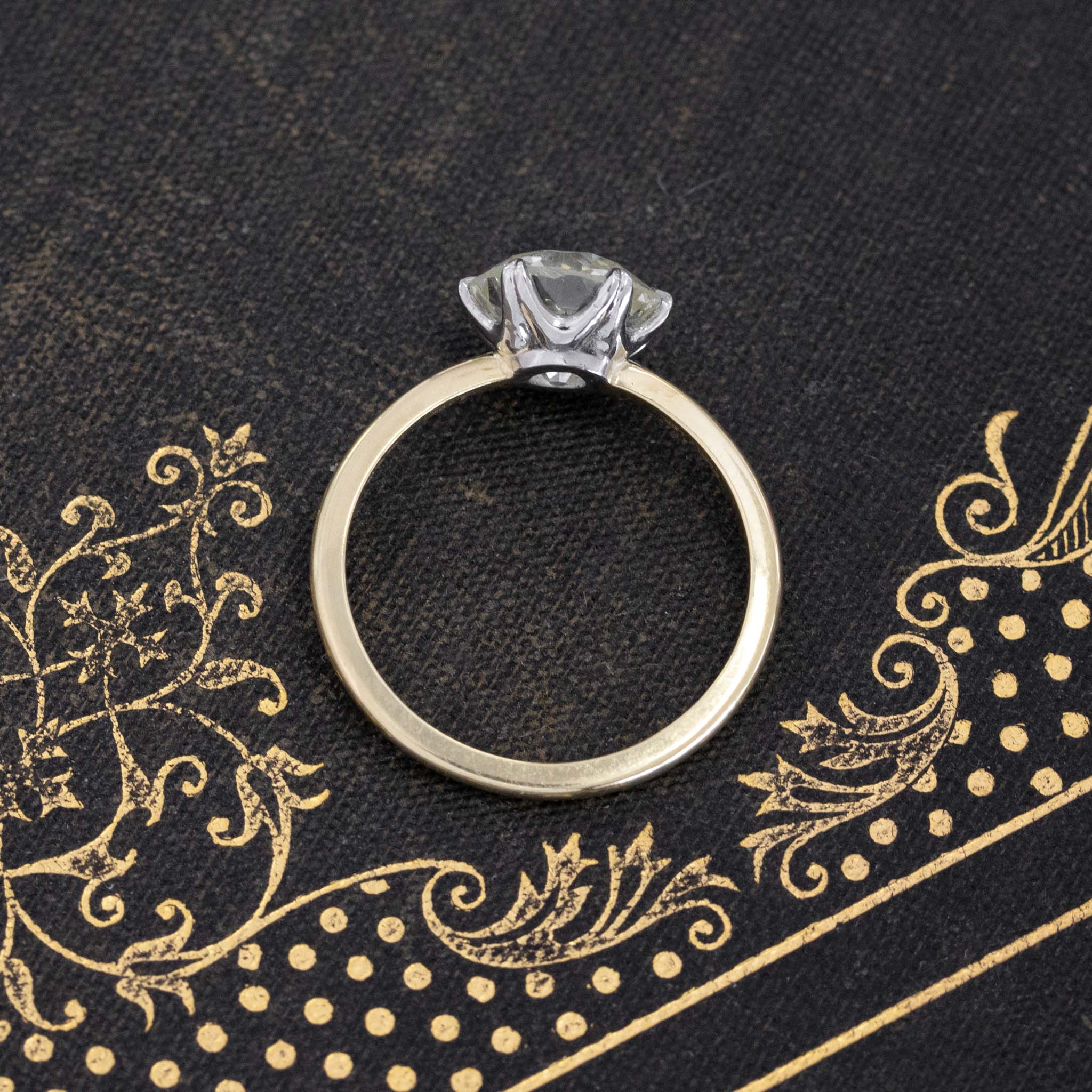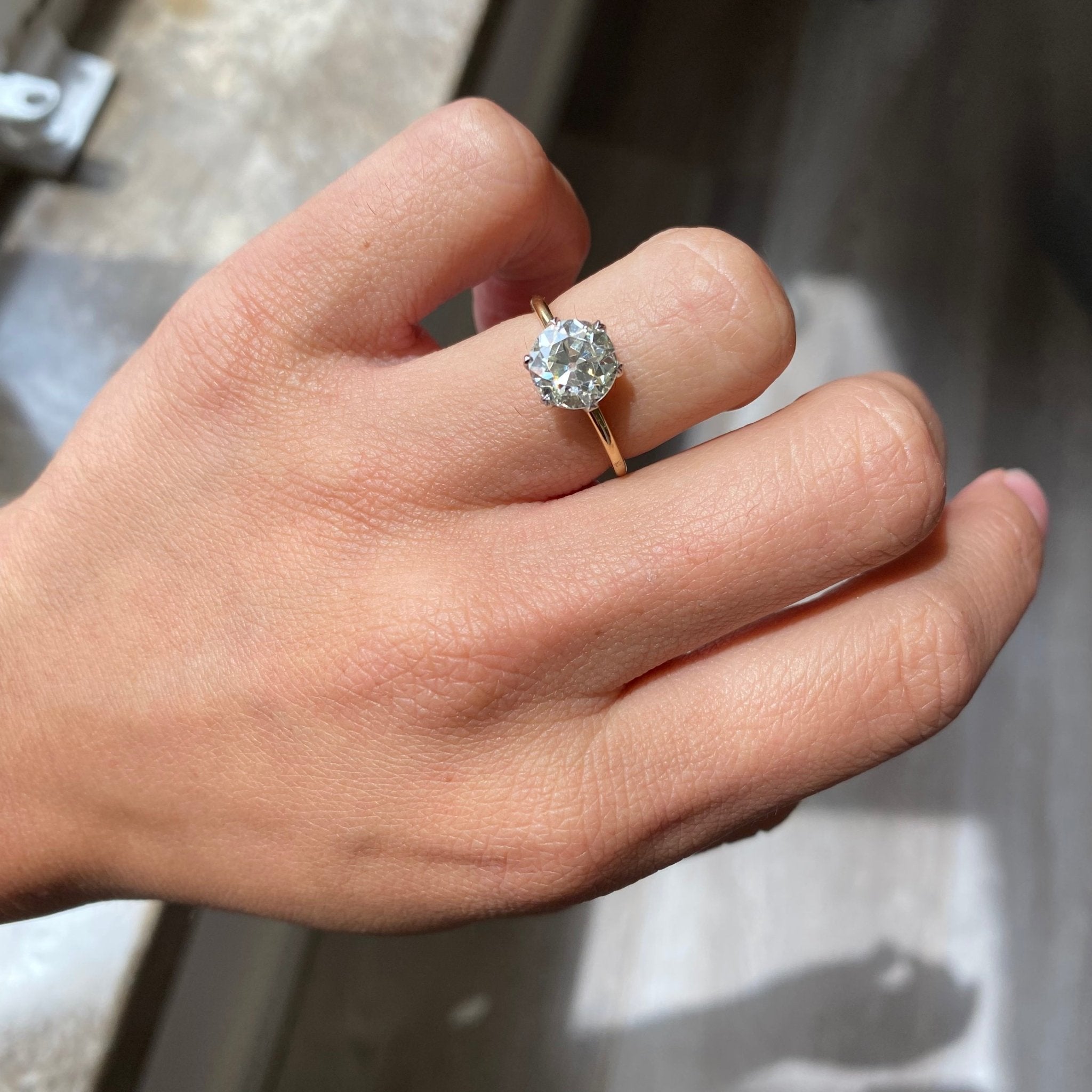Another early cut old Euro which looks very much like her older old mine cut cousins. Plenty of chunk, bright, and just incredibly sparkly diamond. Set in our timeless Wilshire setting. Elegant and low set on the finger - she would make for a fine, fine engagement ring!