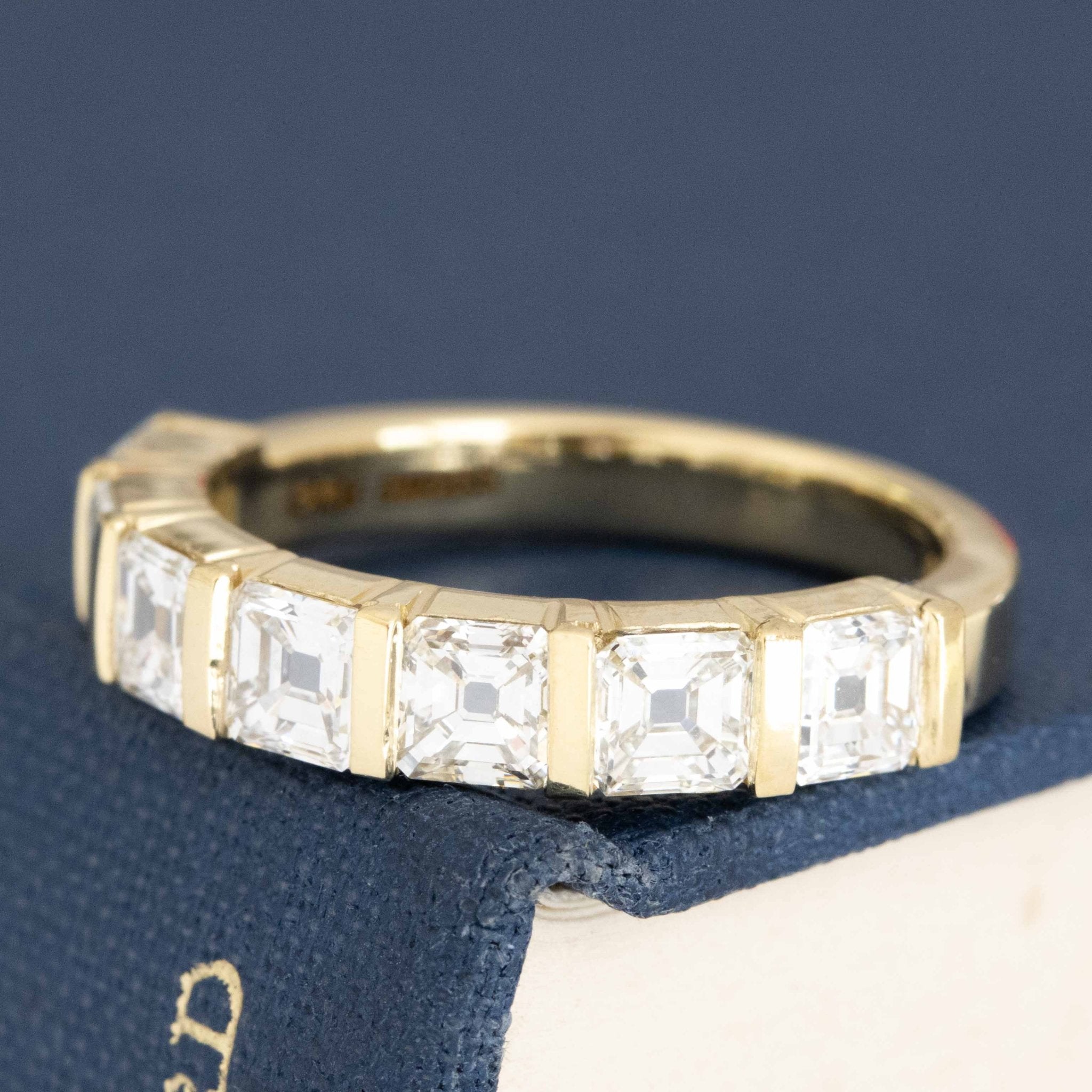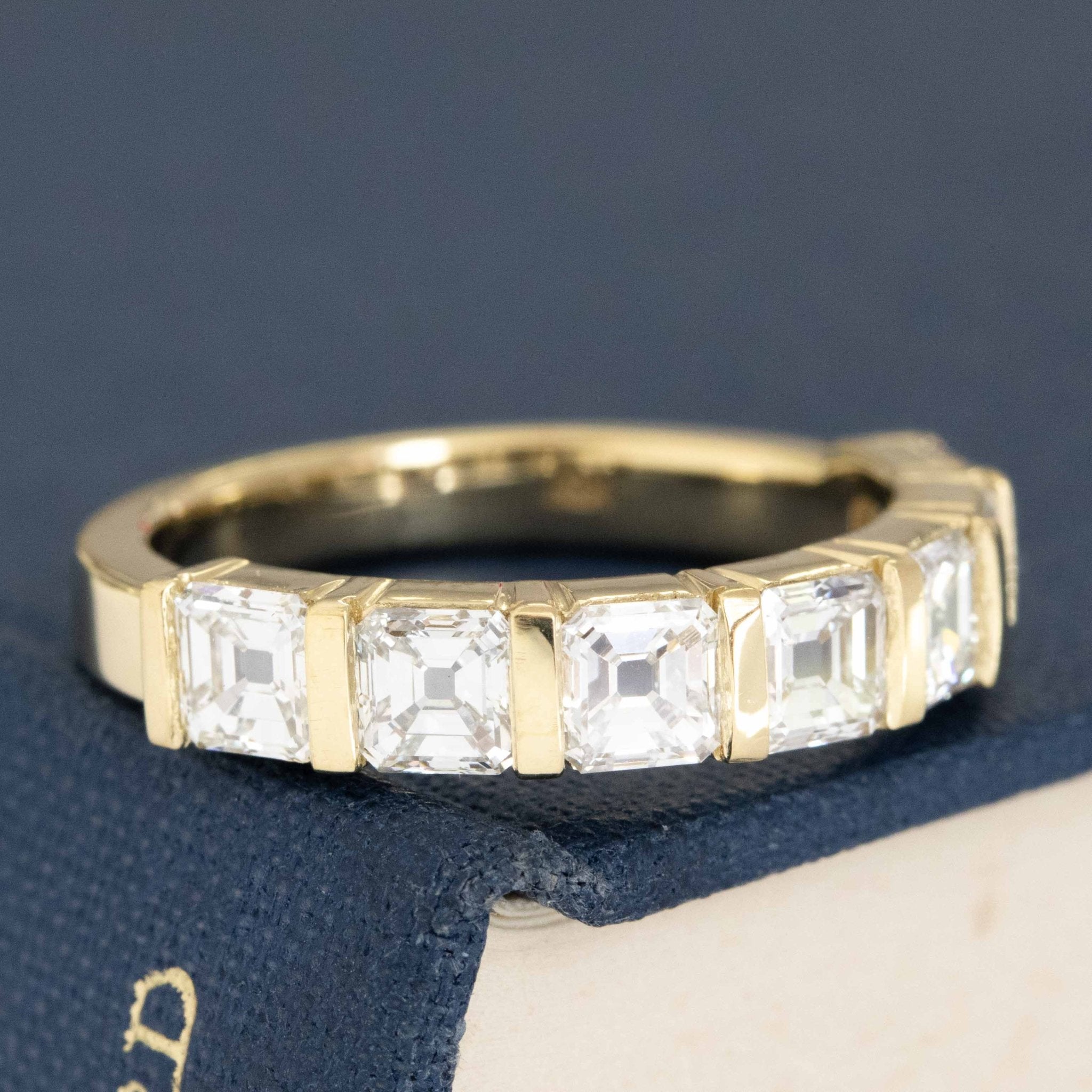 Another batch of JbyG diamond half-hoop bands, this time with antique style asscher cut diamonds! We absolutely adore this parcel of diamonds and knew immediately we wanted to set them in bands. Their crisp facets with wide, open culets are just charming beyond belief!