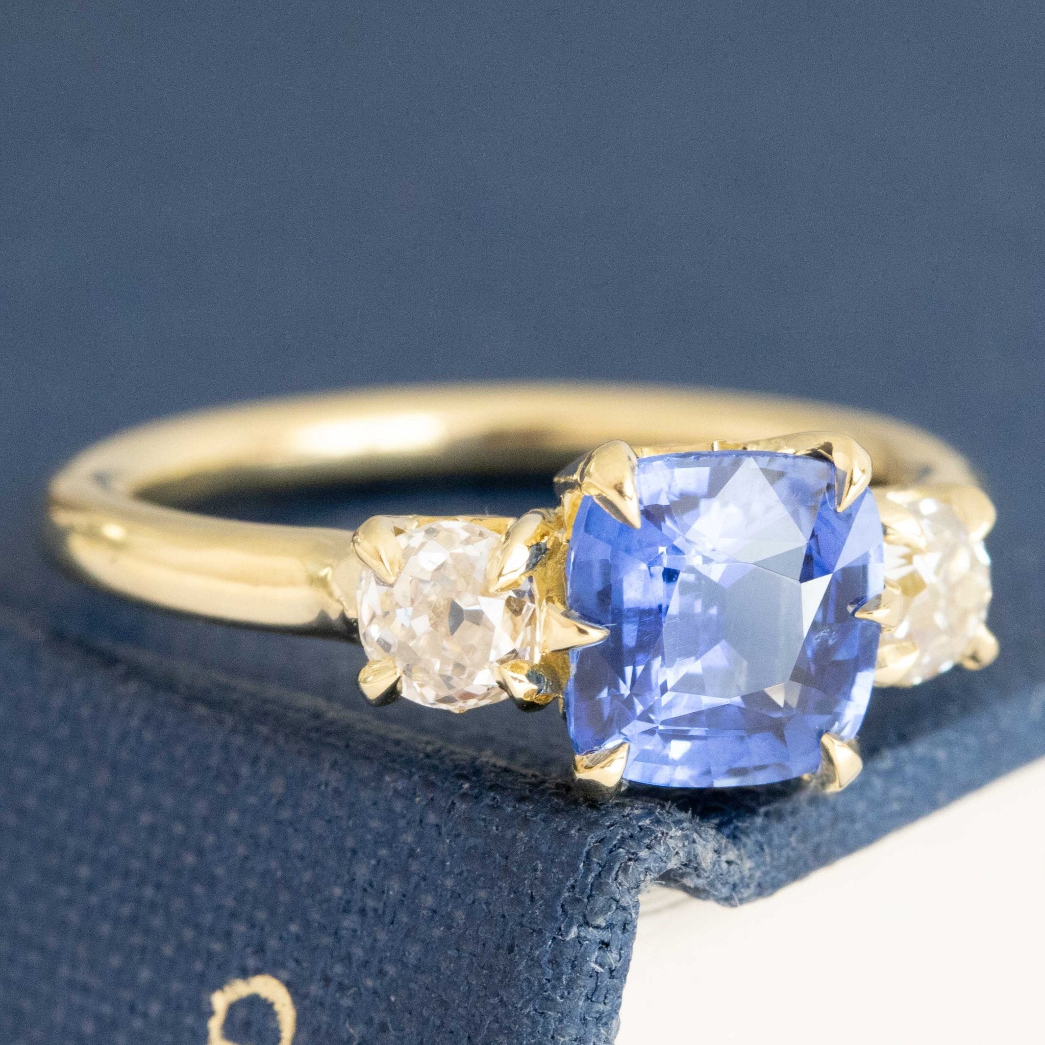 2.21ctw Sapphire & Old Mine Cut Diamond Trilogy Ring