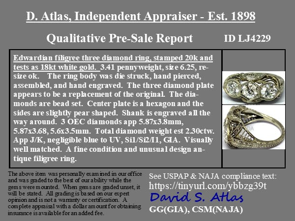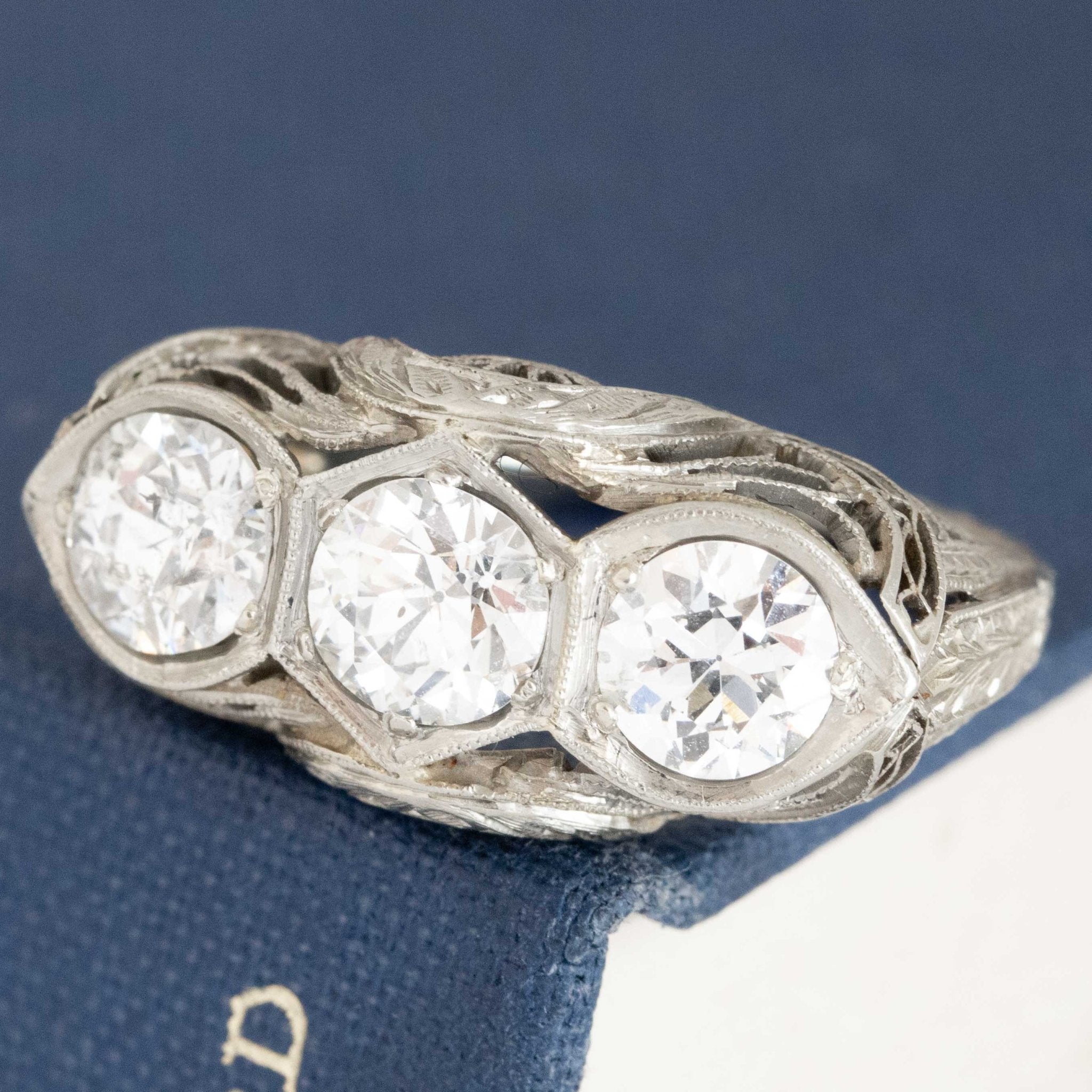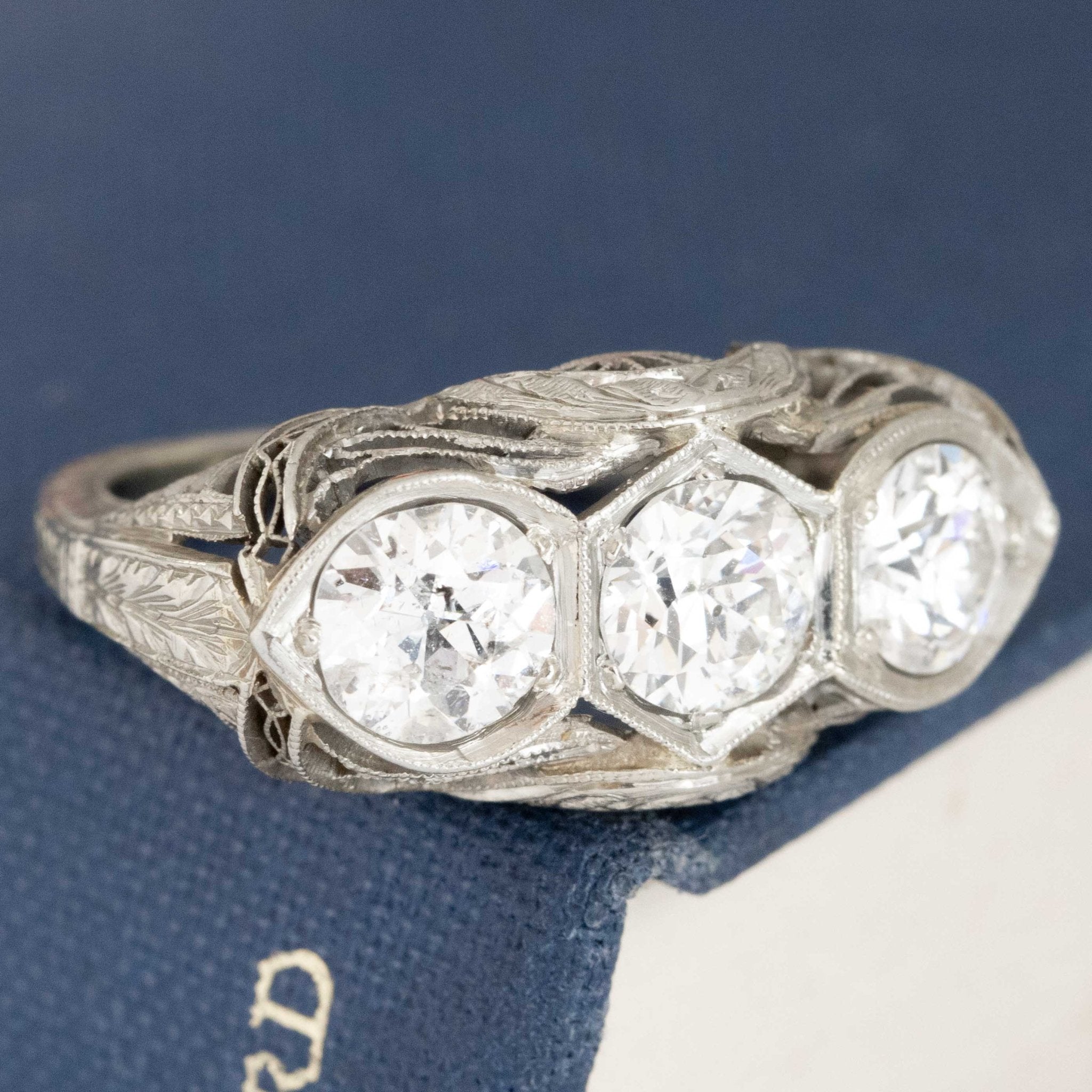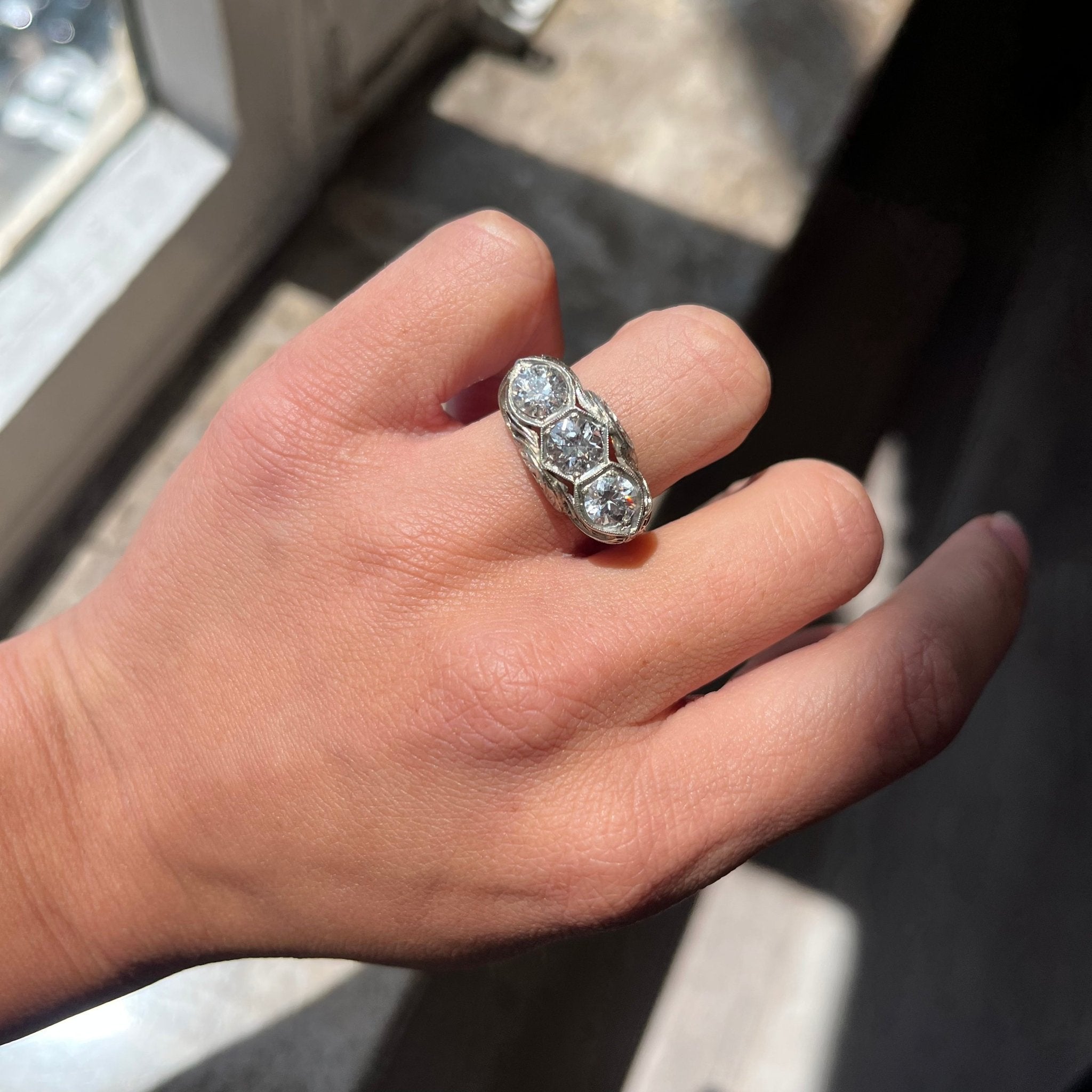 2.30ctw Edwardian Old European Cut Diamond Trilogy Ring