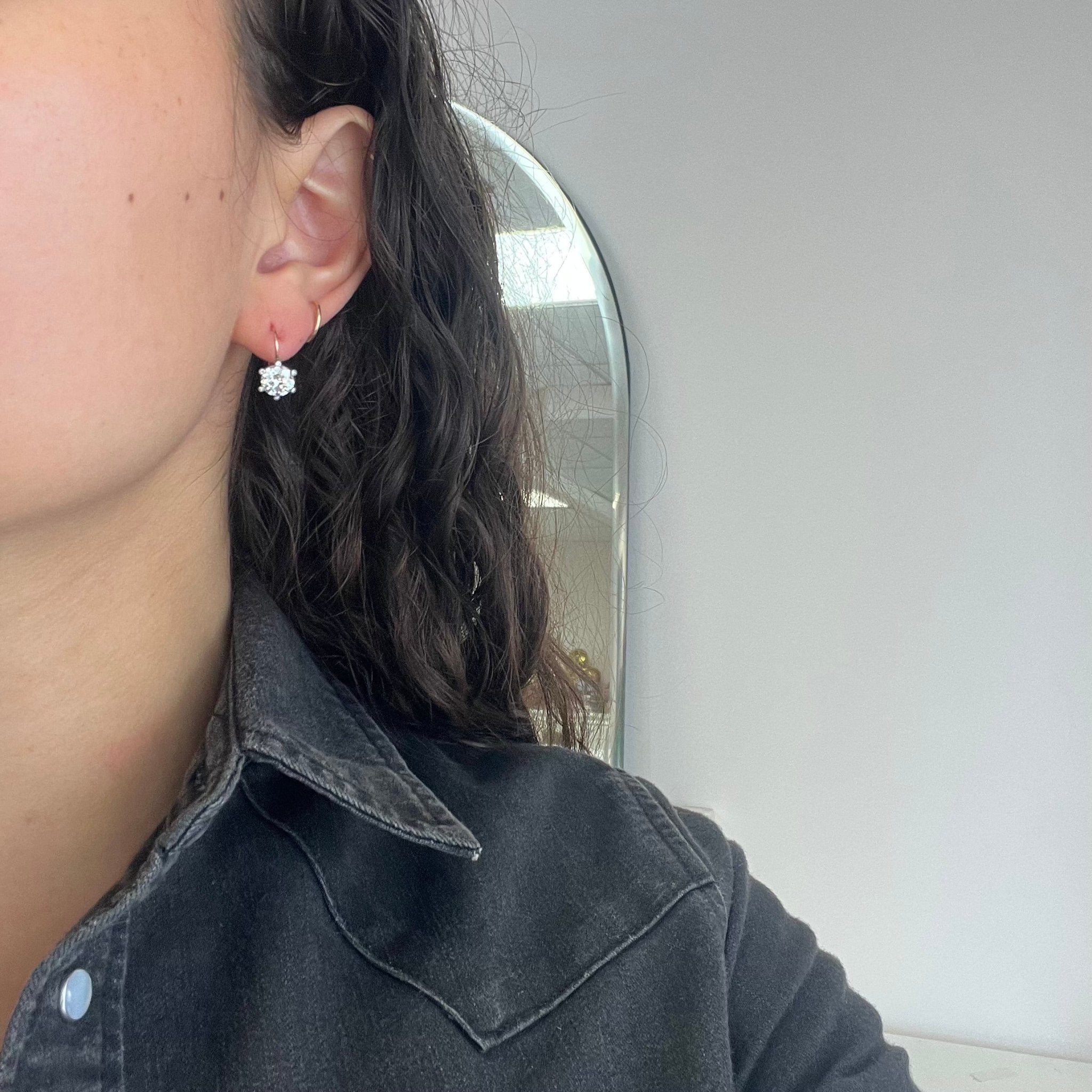 A personal fave from my recent purchases! I was just instantly taken by the star motif that the earrings present face up! The 2 central diamonds are gorgeous late cut OECs with barely there culets and checkerboard faceting. They sit just under the lobes perfectly, catching the light with every movement. Charm personified!