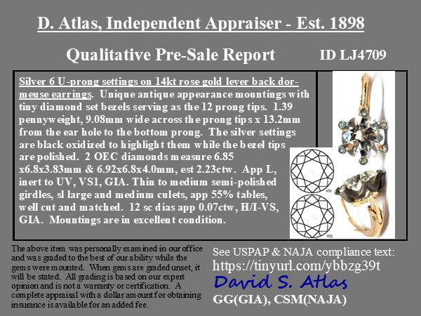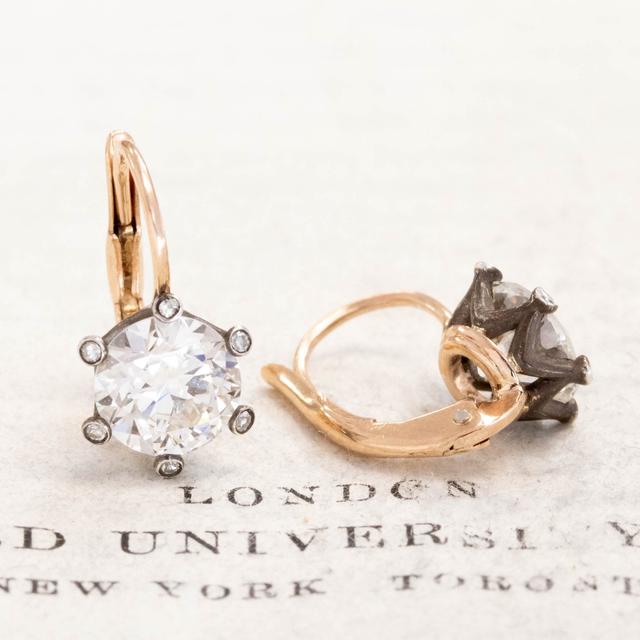 2.30ctw Vintage Old European Cut Diamond Dormeuse Earrings