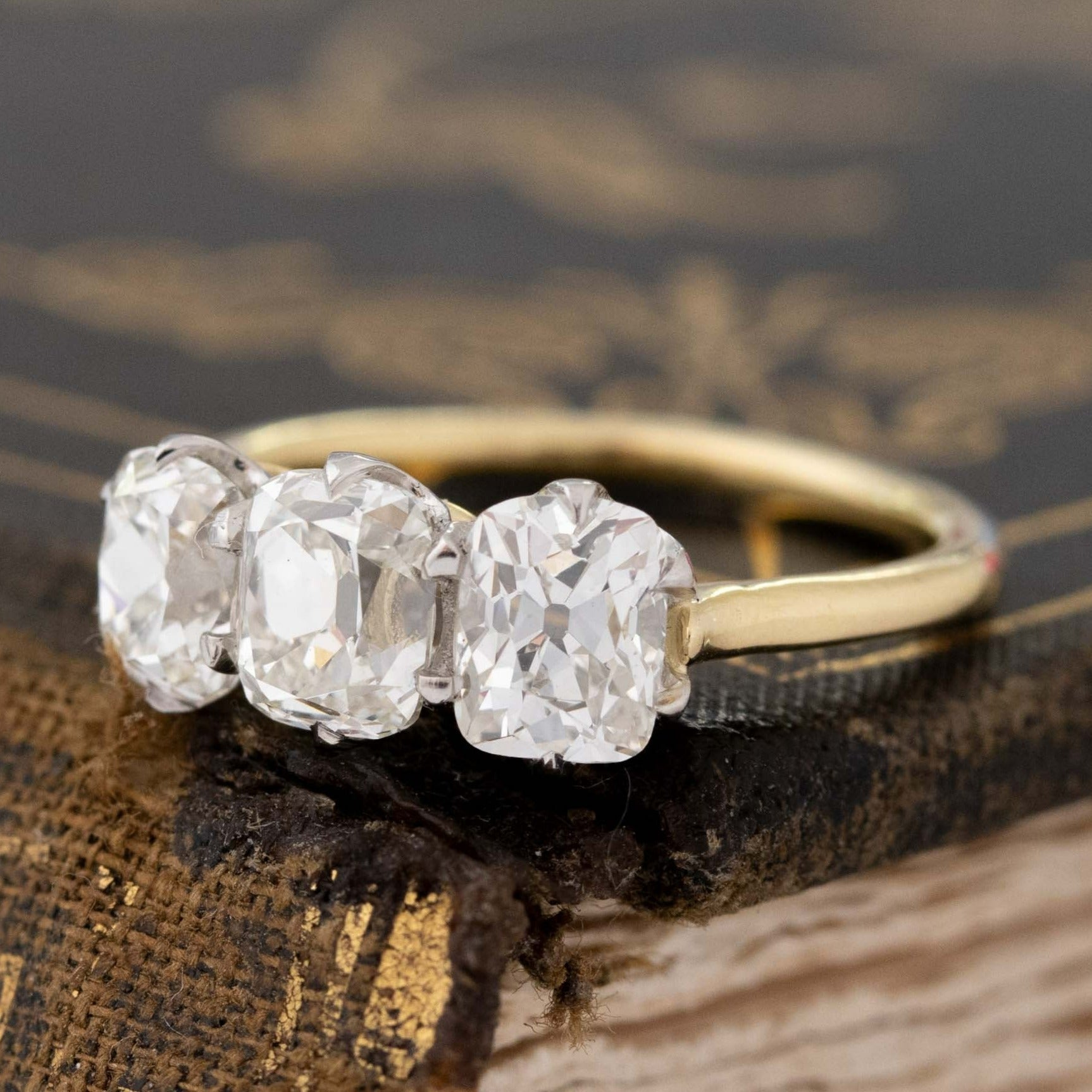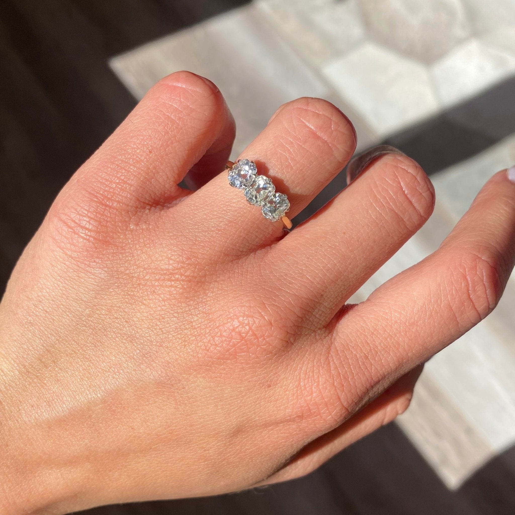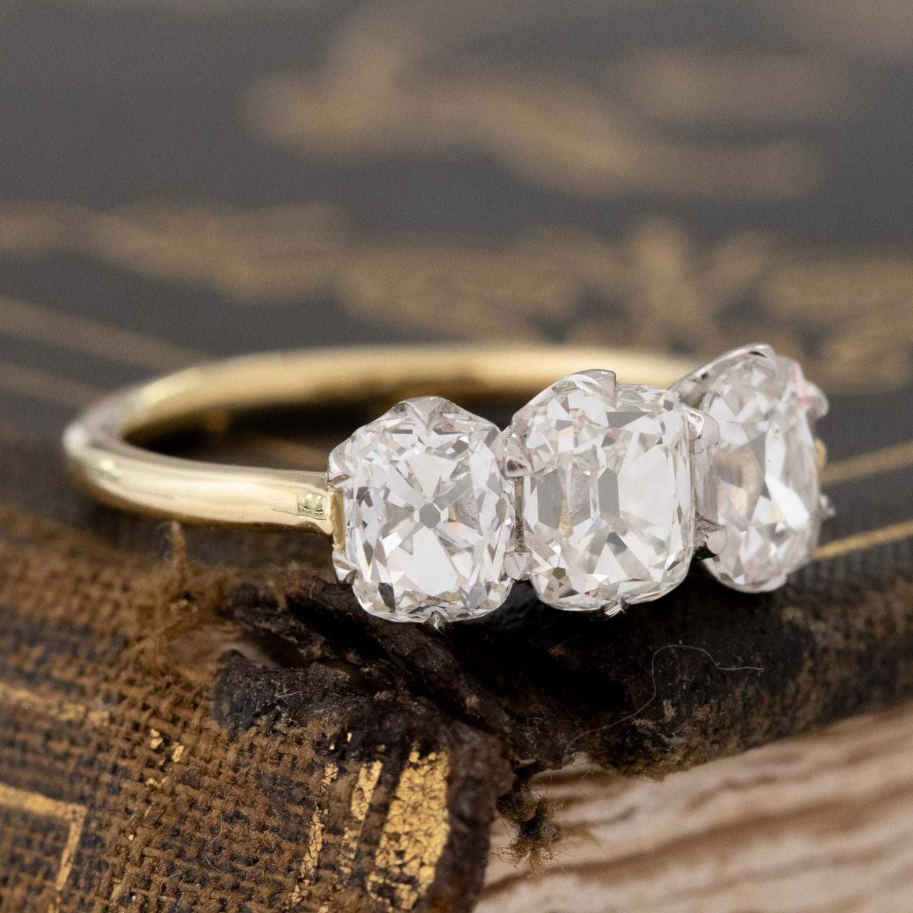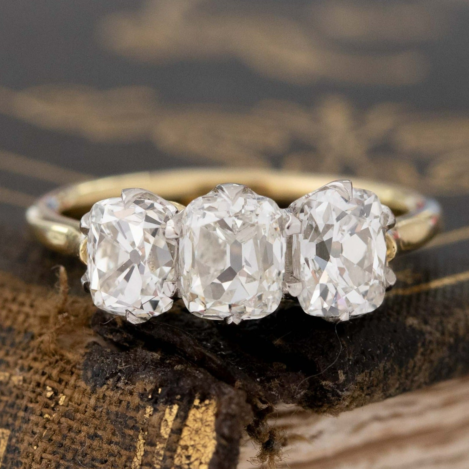 2.31ctw Old Mine Cut Diamond Trilogy Ring