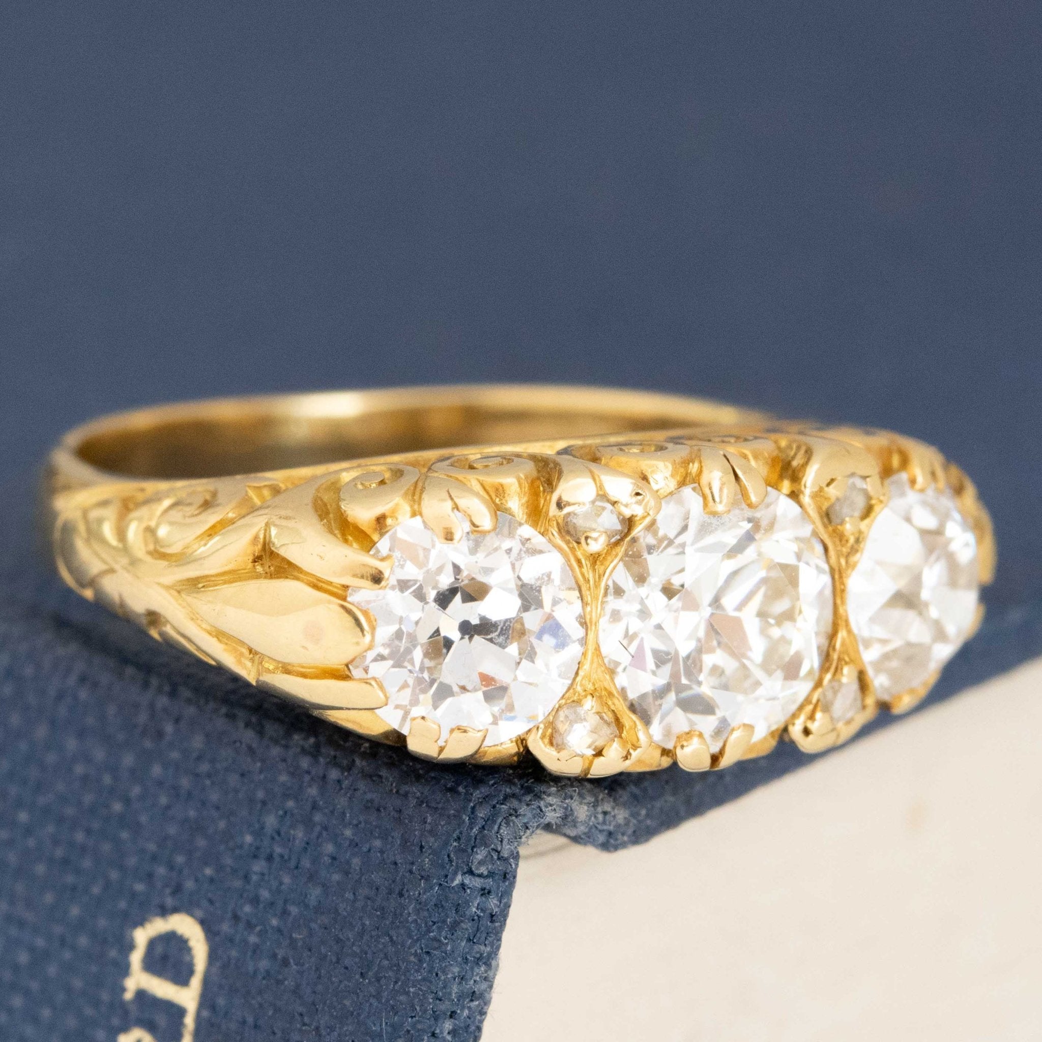 2.34ctw Victorian Revival Old European Cut Diamond Trilogy Ring